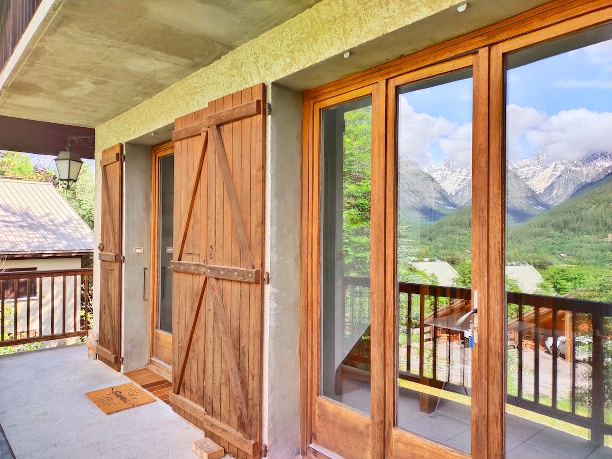 Bienvenue au coeur des Ecrins! L'appartement est placé idéalement sans vis-à-vis avec vue sur les montagnes et au calme. Situé en rez de jardin, vous bénéficiez d'une terrasse ainsi que d’un jardin entouré de nature. En été, le doux bruit des criquets accompagne vos soirées, et la fraicheur du torrent vous permet de supporter les nuits de canicule. En hiver, vous jouissez d'un accès rapide à la station de ski de Pelvoux par le chemin ou celle de Puy-Saint-Vincent (15min) en voiture ou en bus.