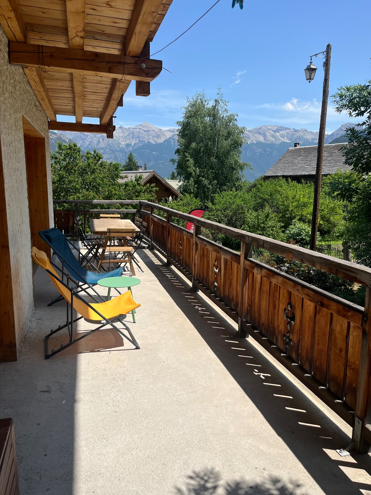 Tout proche et dominant le village de Vallouise, le chalet de Marie lumineux et très confortable conçu par un architecte, est entouré d'un beau jardin de montagne, vous y serez au calme, dedans comme dehors vous y apprécierez la vue d'une montagne apaisante, l'exposition vous permettra de profiter du soleil toute la journée. Bien qu'à 5 mn à pied du centre du village et de ses commodités le lieu est très calme. La grande pièce à vivre est agrémentée d'un poêle pour vos soirées d'hiver.