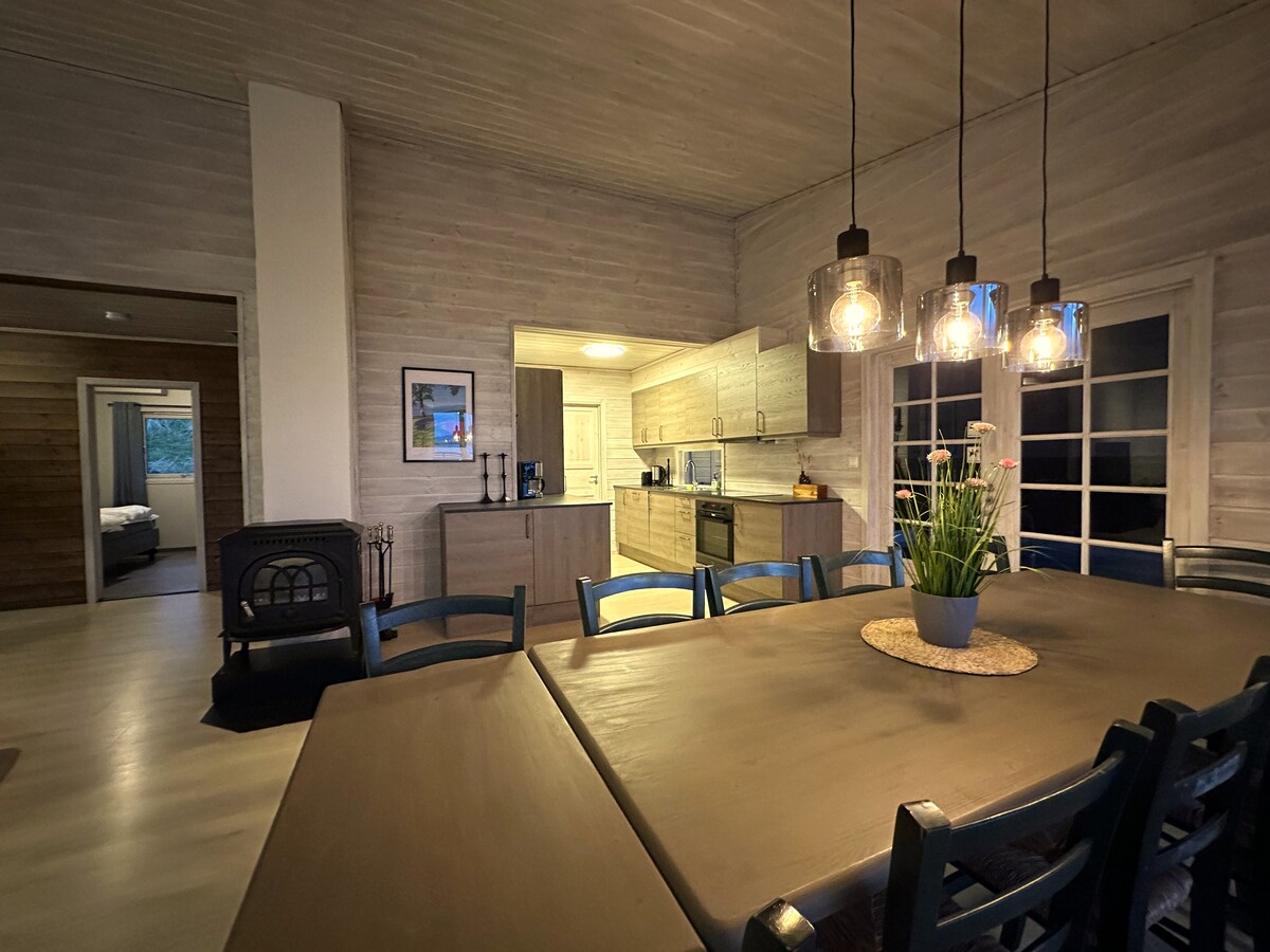 조용한 물가에 위치한 바다의 집 – 평화와 자연에 가까운 곳을 찾는 사람들에게 완벽한 숙소입니다. 이곳은 바다와 가깝고 전망이 훌륭합니다. 사우나는 호수 근처에 있는 숙소에 가깝고, 추가로 대여하여 편안한 휴식을 즐길 수 있습니다. 카약, 스탠드업 패들보드, 잠수복 대여도 제공하며, 호그나센 정상 여행 등 농장에서 하이킹을 즐길 수 있는 좋은 기회도 제공합니다. 농장에서 지속 가능한 생산을 하고 계절에 따라 계란, 와규-앵거스 고기, 채소를 판매합니다.