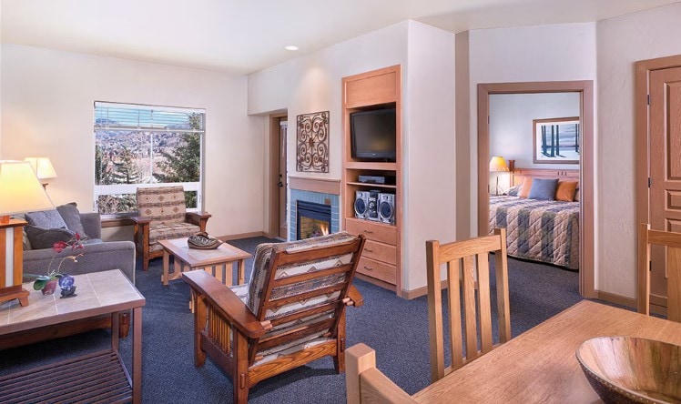 1 Bedroom + Loft at The Pines at Ore House는 스키 리조트에서 1마일 미만 떨어져 있습니다. 거실에는 높은 아치형 천장과 가스 벽난로, 대형 평면 TV가 있습니다. 주방에는 바에 3인용 좌석이 완비되어 있으며, 작은 식탁에는 3인용 좌석이 더 있습니다. 가스 그릴과 의자가 있는 전용 파티오에서 에메랄드 마운틴의 전망을 감상할 수 있습니다. 아니요: STR20260205