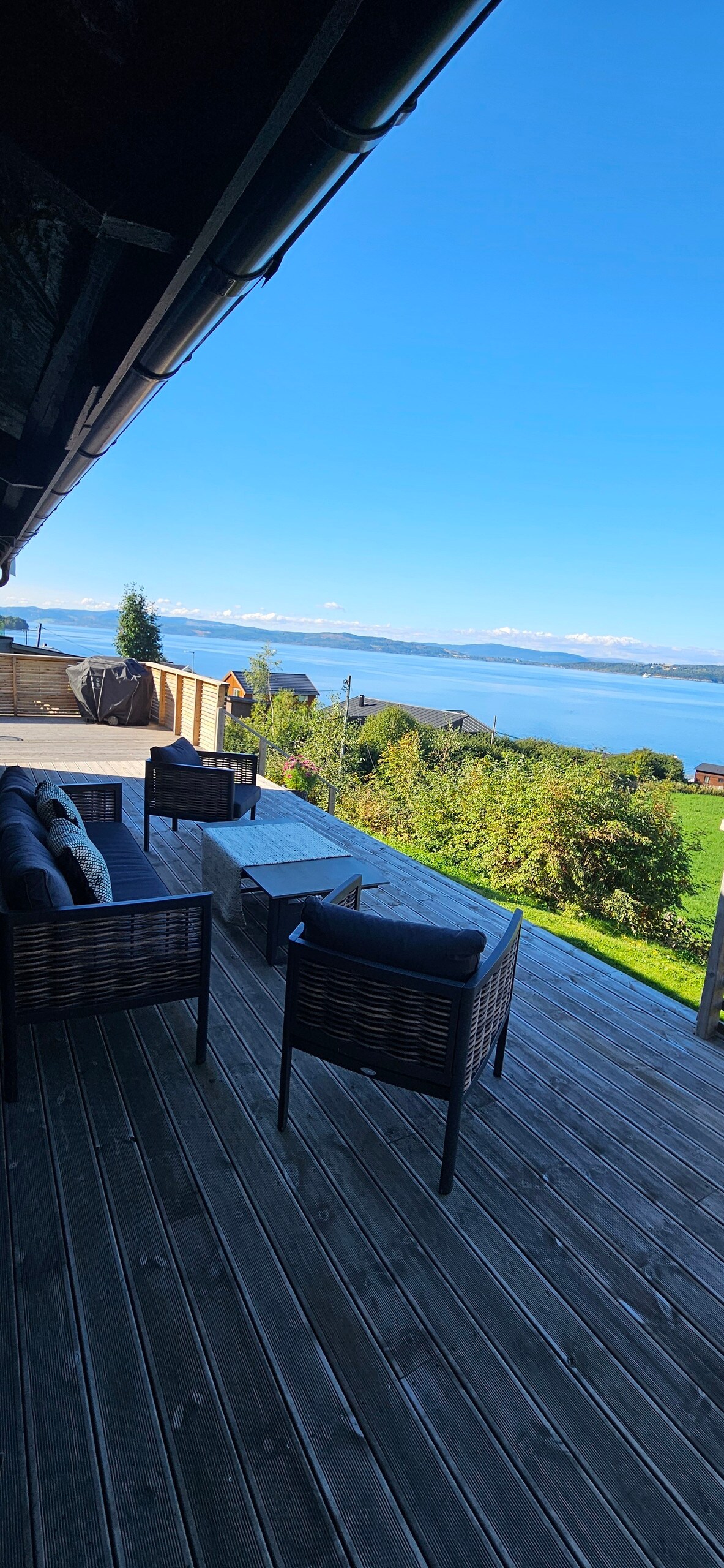 Moderne hytte med ni sengeplasser og fantastisk fjordutsikt. Uteområde med sol fra morgen til kveld. Gangavstand til sjøen med badeplass, benker, grill, lekeapparat og volleyballbane. Fullt utstyrt kjøkken. Spisebord og sitteplass til ni personer. Romslig stue med sofa, bord og smart-TV. Barnevennlig og rolig område uten trafikk. Bålpanne, leker, spill og trampoline. Hytta er perfekt for en eller flere familier, eller par som reiser sammen. Ingen festing eller vennegrupper.