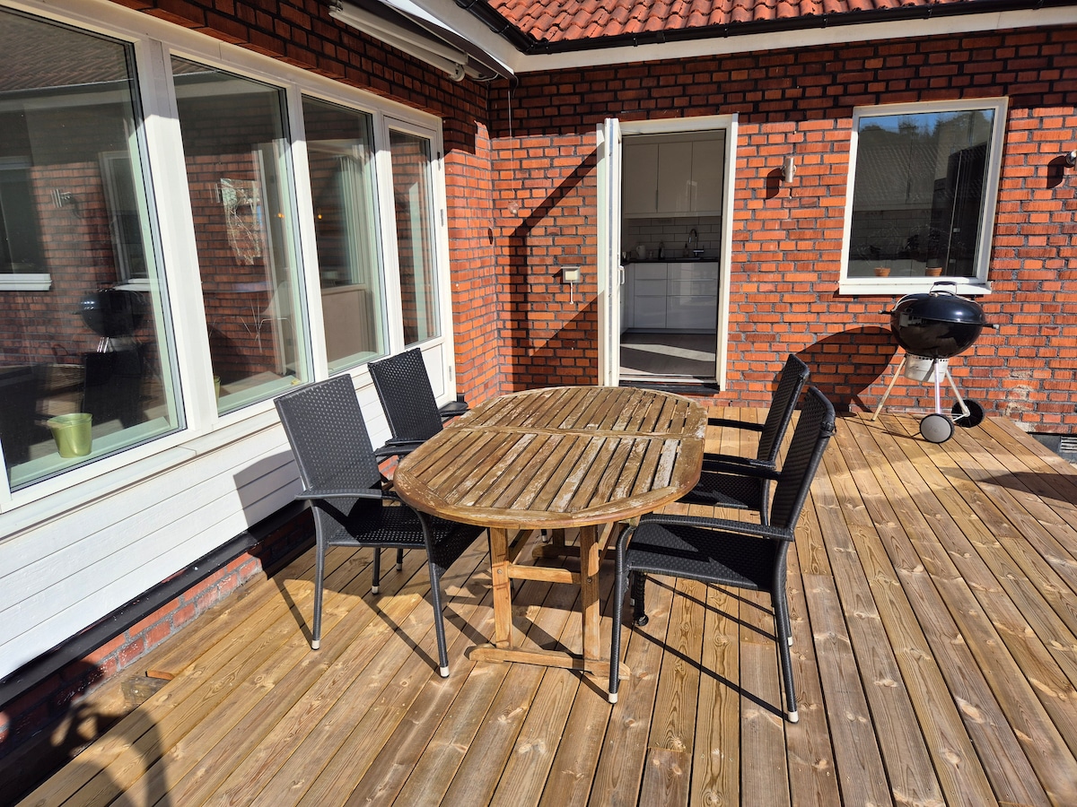 오토의 집은 90평방미터의 넓은 발코니가 있으며, 일부는 멋진 바다 전망을 자랑하는 유리로 된 파티오가 있습니다. 조용하고 평화로운 시골 위치. 놀이와 게임을 즐길 수 있는 넓고 사랑스러운 잔디밭. 식사 공간과 라운지 가구가 있는 야외 그릴. 숙소에 무료 주차장이 있습니다. 차나 버스를 타고 체른과 오루스트의 딸기밭으로 쉽게 이동할 수 있습니다. 골프장 2km 거리