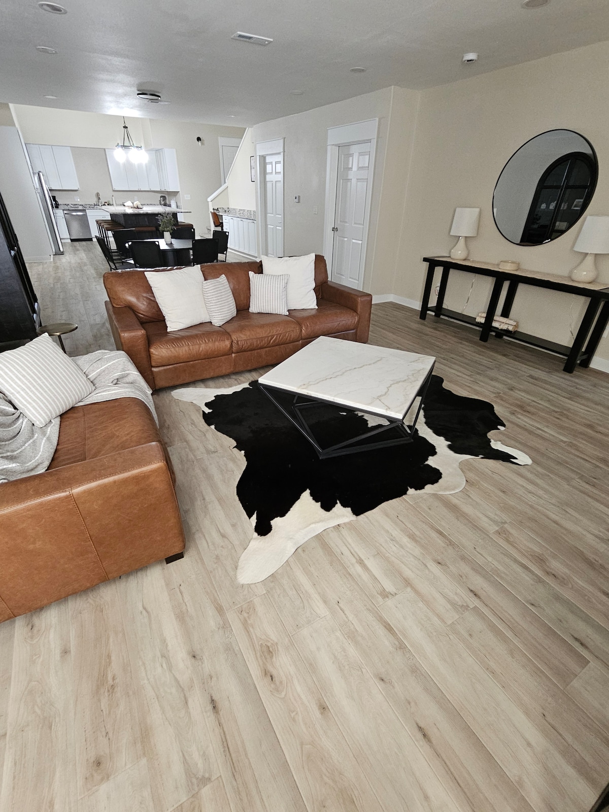 이 편안한 4베드룸 2욕실 미드 센추리 모던 숙소는 가족, 커플, 업무팀에게 완벽합니다. 편안하게 휴식을 취하고, 그릴을 구우고, 평화로운 뒷마당이나 재미있는 실내 공용 공간을 즐겨보세요. 실내 또는 야외에 있는 장작을 태우는 벽난로 앞에 앉아 추억을 더 만드세요. 거실 공간은 넓고 밝습니다. 커다란 창문, 완비된 주방, 아름다운 식사 공간, 커피/차 바, 원격 작업 공간, 초고속 와이파이, 스마트 TV, 게임, 무료 세탁 및 풍부한 주차 공간