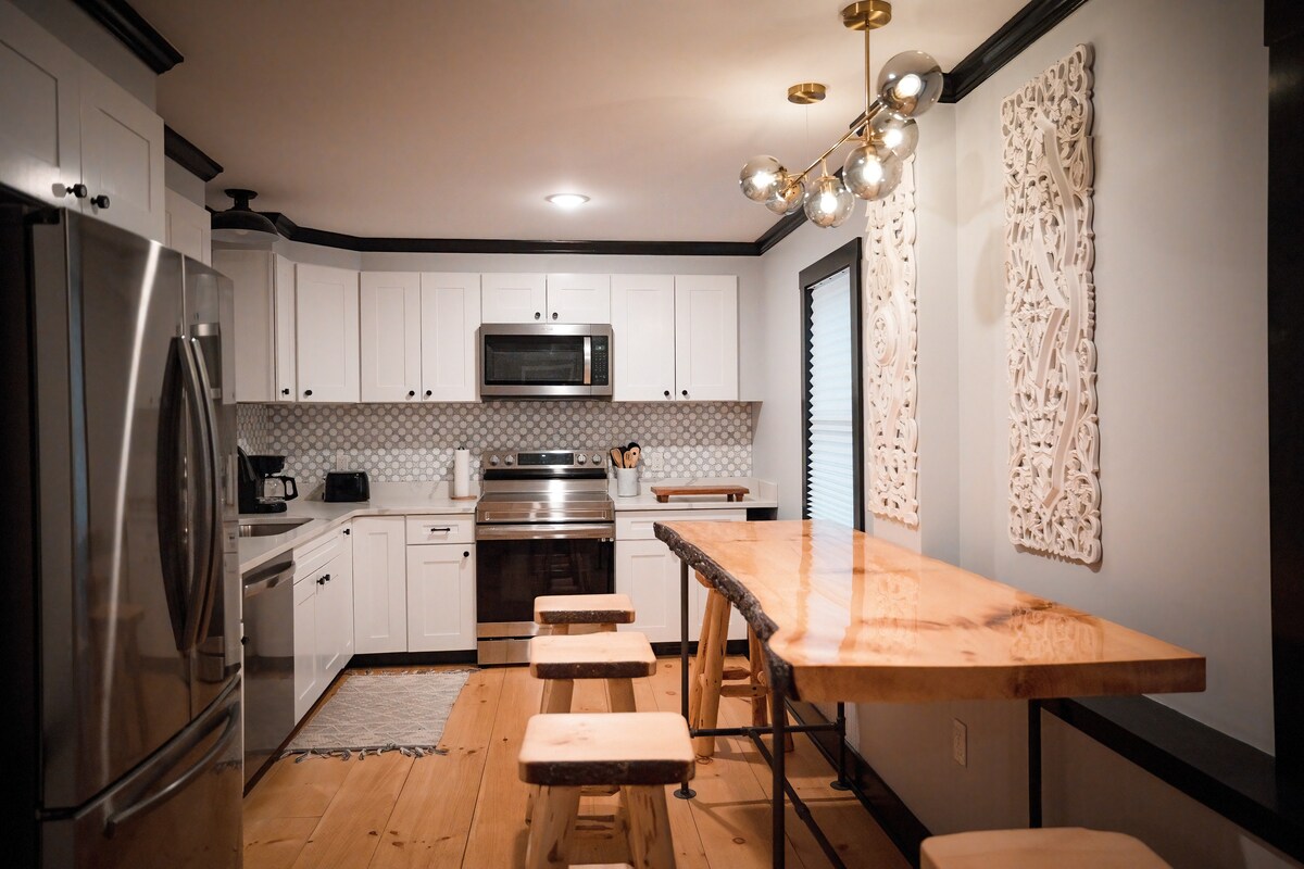 스토에 위치한 차분하면서도 스타일이 살아 있는 숙소에서 편안한 휴식을 즐기세요. 이 멋진 새로운 침실 2개, 욕실 2개는 강가에 위치하고 있습니다. 아름다운 실내 및 야외 거실 공간으로 데크에서 커피 한 잔을 즐길 수 있는 넉넉한 공간을 갖추고 있습니다. 세련되고 깨끗한 신축 건물로 메인 스트리트 스토에서 몇 분, 트랩 패밀리 로지에서 2마일, 스토 마운틴 리조트에서 15분 거리에 있습니다. 이 멋진 공간에서 자연을 최대한 경험하면 절대 떠나고 싶지 않으실 겁니다.