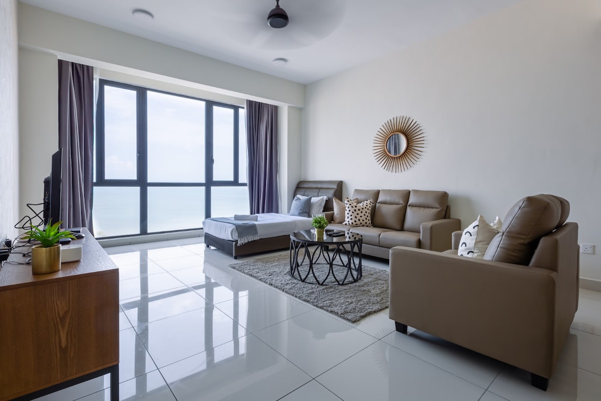Coastal Serenity with Ocean View Welcome to your tranquil seaside escape at Seafront & Seaview_NordicHouse by Hanoverien Suites — a beautifully styled, light-filled space designed for comfort, relaxation, and unforgettable coastal moments. -Turn left to : Georgetown Tourist Attractions, Gurney & Pulau Tikus -Turn right to : Tanjung Bungah, International Schools and Batu Ferringhi beach. -Immediate adjacent to : International Schools at Straits Quay 槟城国际学校 국제학교 国際学校 こくさいがっこう