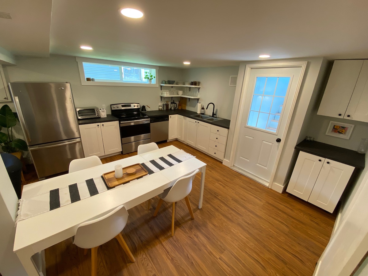 평화로운 티 힐에 위치한 신식 2베드룸 숙소인 펜웨이 힐 스위트에 오신 것을 환영합니다. 이 지하 스위트룸, 조용한 동네, 깨끗하고 편안한 공간을 전용으로 즐기세요. 티힐 지방 공원과 해변에서 불과 1.8km 거리에 있으며, 스트랫퍼드의 상점과 레스토랑까지 5분, 샬럿타운 시내까지 10분 거리에 있습니다. 자연과 도시의 편리함을 즐기며 편안한 숙박을 원하는 커플, 가족 또는 소규모 그룹에게 적합합니다.