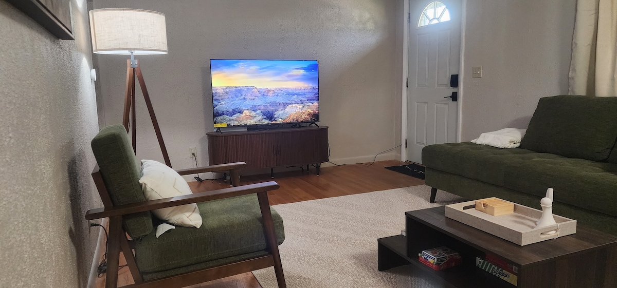 북적거리는 생활에서 벗어나 한 걸음 물러서 보세요. 조용한 작은 마을의 평화롭고 느린 속도를 즐겨보세요. 이 아름다운 새 숙소는 타운 공원에서 가까운 곳에 있습니다. 아름다운 저녁 산책을 즐기고, 멋진 지역 관광지를 확인하고, 10마일 거리에서 식사를 즐겨보세요. 교통량이 적고, 소음이 적고, 스트레스가 적습니다! 넓은 거실 공간은 집처럼 편안함을 느낄 수 있습니다. 좋은 시간 보내세요. 한가롭게 쉬면서 잠시 머물러보세요. 이런 곳은 다른 곳에는 없습니다.
