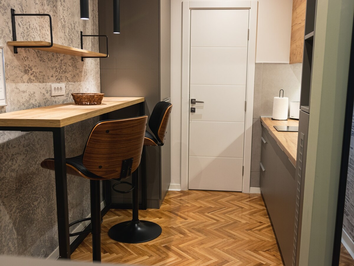 현대적으로 설계된 아파트는 편안함, 평화로움, 도시와의 근접성을 원하는 커플이나 출장자에게 이상적입니다. 편안한 소파, 스마트 TV, 업무용 책상이 있는 넓은 거실로 휴식이나 생산적인 업무 환경에 이상적입니다. 식사 준비에 필요한 모든 가전제품과 기구가 완비된 현대적인 주방. 더블 침대와 고급스러운 침구를 갖춘 편안한 침실입니다. 신중한 분위기의 조명은 편안한 분위기에 기여합니다.