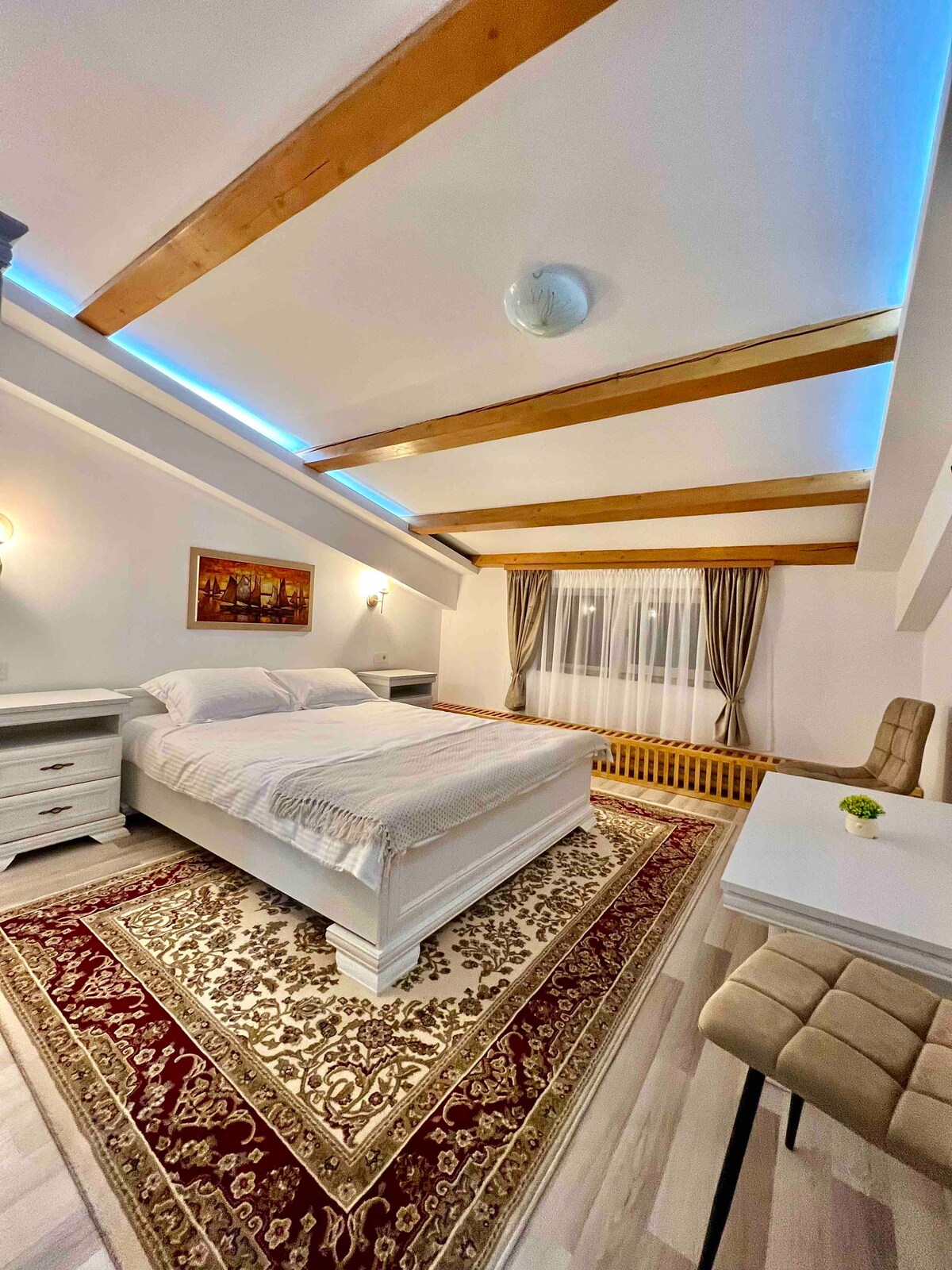 센트럴 타워 아파트는 수체아바 시내 지역의 새로운 블록에 있습니다. 레스토랑, 카페, 박물관, 주립 기관 등 수체아바 중심지의 모든 관광지에서 2 ~ 5분 거리에 있습니다. 140 * 200cm의 소파, 4인용 식사 공간, 에어컨, TV, 넷플릭스가 구비된 개방형 거실을 제공합니다. 개방형 주방이 완비되어 있습니다. 침실에는 160 * 200cm의 더블 침대, 풀 HD 스마트 TV, 옷장이 있습니다.