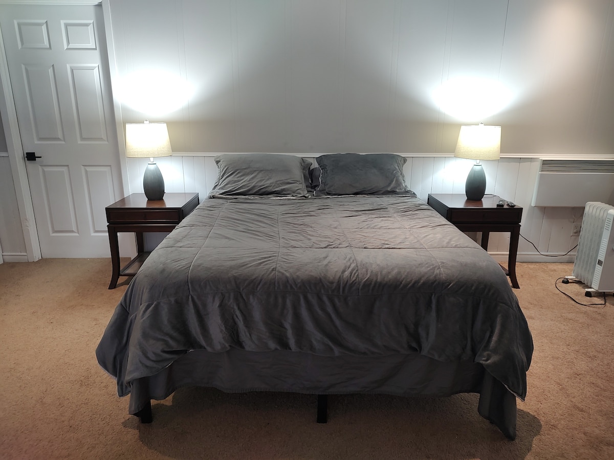 가구가 완비된 새로운 전용 지하 아파트에서 편안하고 여유로운 시간을 보내세요. 이 깨끗한 숙소는 반려동물 동반이 불가하며 금연이며 최근에 완전히 리모델링되었습니다. 이 현대적인 공간에는 전용 침실 1개, 멋진 욕실 1개, 시설이 완비된 워크스테이션, 주방 테이블과 식사 공간, 파이어스틱이 있는 60인치 평면 스크린 TV가 있습니다. 원활하고 편안한 숙박 경험을 하시기 바랍니다. 전화 또는 문자로 연중무휴 연락 가능합니다.