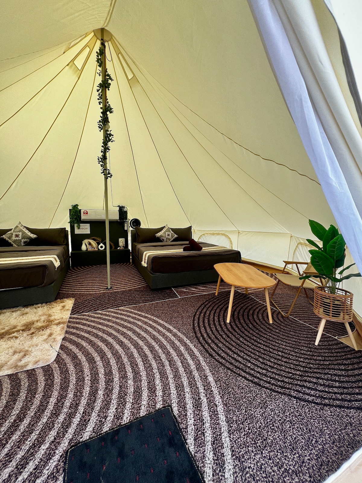 Enjoy the lovely setEscape to a romantic seaside glamping tent surrounded by nature. Enjoy the ocean breeze, cozy air-conditioned comfort, and peaceful nights under the stars — perfect for couples or families seeking a unique tropical getaway.ting of this romantic spot in nature.