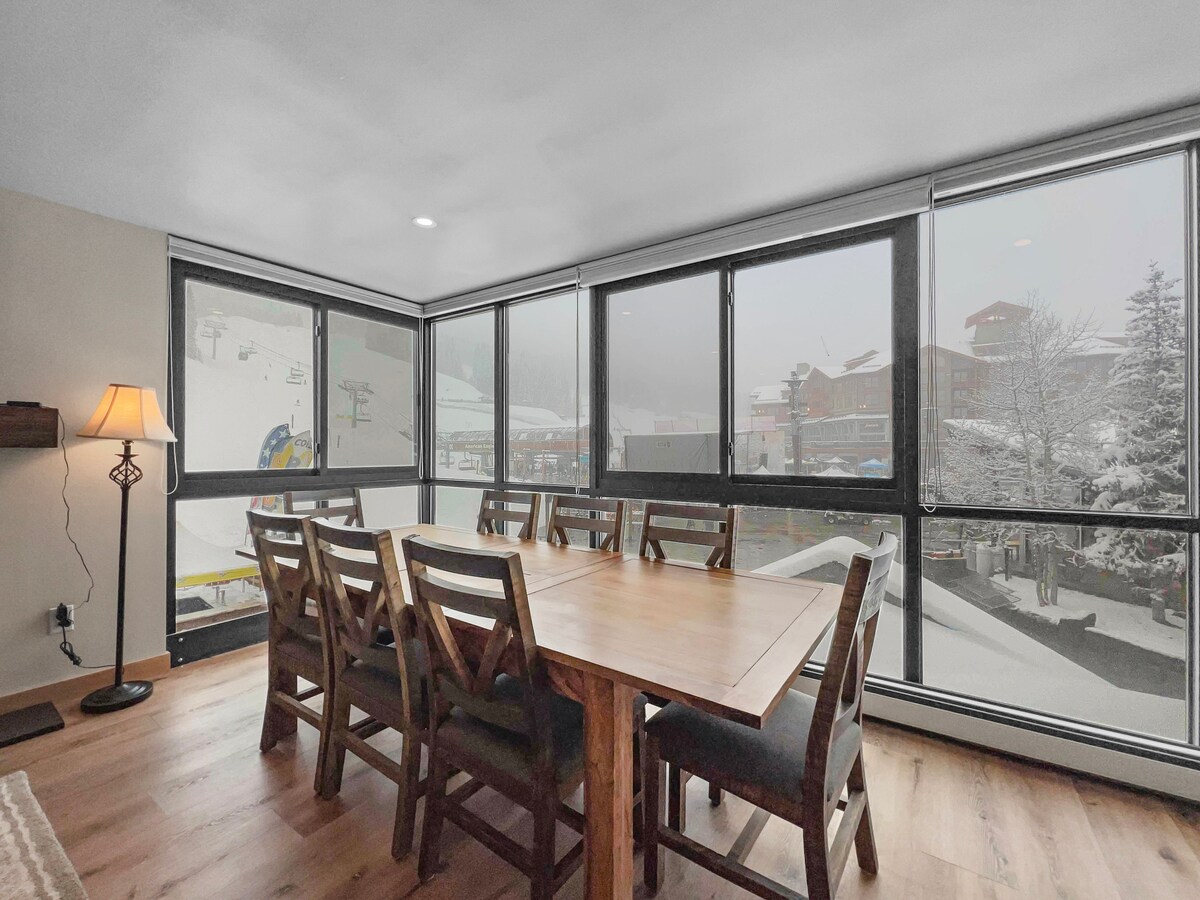 현대적인 스키를 탄 채로 출입 가능한 숙소. 아메리칸 이글 리프트까지 몇 걸음 거리. CJ