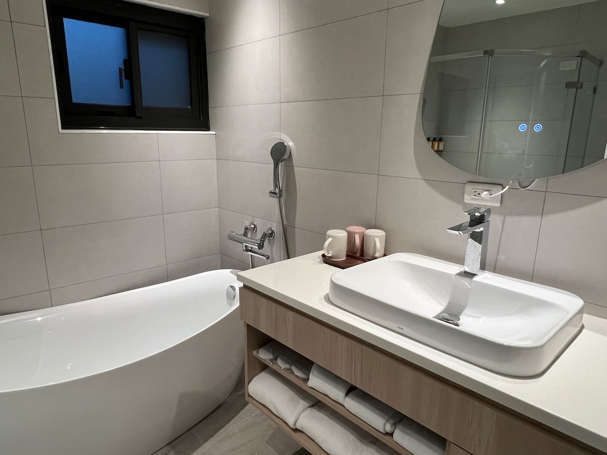 Sun Moon Lake - Sun Moon Residence - Shuisha Pier๋ Sun Moon Lake Old Street์ ์์นํ๊ณ ์์ผ๋ฉฐ, ์ ๋ฌธ ๋ ์ดํฌ ๋ฒ์ค ์ ๋ฅ์ฅ์ ์์นํ ๊ฐ์ค์๋ ๋ฌด๋ฃ ์์ดํ์ด์ ํ๋ฉด TV๊ฐ ์๋ ํ๋์ ์ธ ๊ฐ์ค์ ์ ๊ณตํฉ๋๋ค. ์ด ํธํ ์ ์์ ๊ฑฐ ๋์ฌ, ๋ฃธ์๋น์ค, 24์๊ฐ ๋ฆฌ์ ์ ์ ์ ๊ณตํฉ๋๋ค. ์ง ๋ณด๊ด ๋ฐ ๋ฐ๊ถ ์๋น์ค๋ฅผ ์ด์ฉํ์ค ์ ์์ต๋๋ค.๊ด๊ด ํฌ์ด ์นด์ดํฐ๋ ๊ฒ์คํธ๋ฅผ ์ํ ํฌ์ด๋ฅผ ์ค๋นํ ์ ์์ต๋๋ค.
