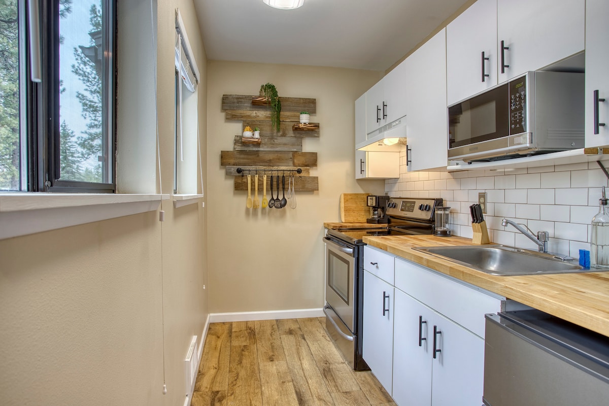 -Year Round Hot Tub and Seasonal Pool- -Walking distance to Food Truck Lot and Beer Garden- -25 Minutes to downtown Bend- -25 minutes to Mt Bachelor- -No Chores (no trash takeout, bed stripping, laundry, etc.)- -Super Clean -Owner Cleaned, Managed, and Maintained- -Free Parking Steps from Your Door- -Easy Self Check-In with Digital Locks (unique code for every guest)- -King Sized Bed- -50โ Samsung TV Logged into Netflix, Hulu, HBO and more-