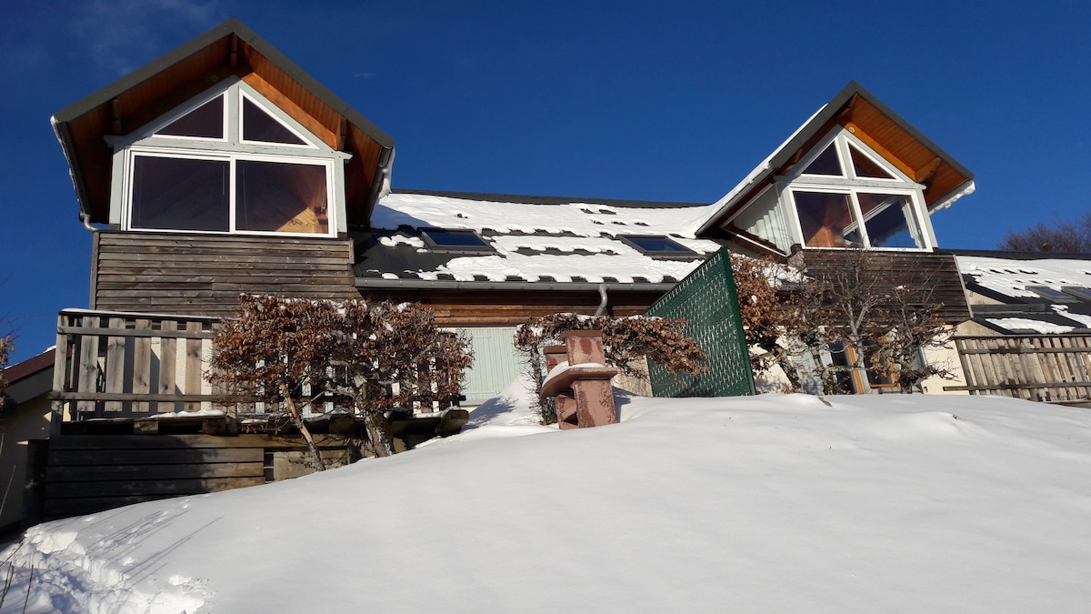 Gabrielle et Benjamin vous accueillent dans l'ancienne grange de leur maison qu'ils ont aménagé avec soins pour la transformer en un studio lumineux de 27 m2. La décoration est résolument contemporaine et colorée pour la pièce de vie et néo-rétro pour la salle de douche. Le coin cuisine/repas dispose de l'essentiel pour réchauffer ou cuisiner des mets simples. Situé dans le hameau de Ballon qui surplombe la ville, il vous offre calme et confort pour vos séjours de 2 nuits minimum.