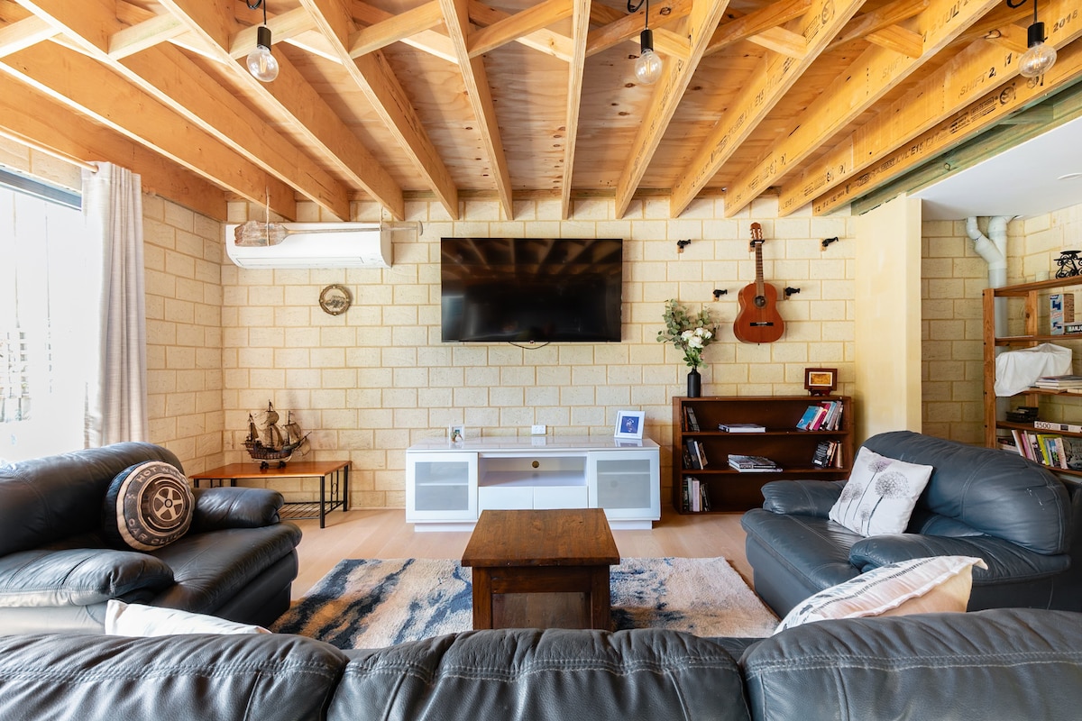 웨스턴 오스트레일리아 최고의 해변과 해양 보호구역 바로 맞은편에 있는 편안한 해변 주택. 몇 걸음만 나가면 수영, 서핑, 스노클링을 즐길 수 있습니다. 현지 카페, 바, 레스토랑까지 걸어서 가거나, 바다를 바라보며 멋진 발코니 일광욕을 즐겨보세요. 모든 것이 바로 앞에 있는 여유로운 해안 휴양을 찾는 게스트에게 완벽한 숙소입니다.