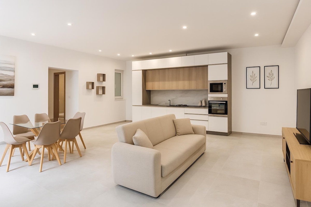 Enjoy a private space to call home during your sunny stay in Malta! This New and Bright apartment is situated in the heart of Mosta 25 minutes away from Valletta, the capital city of this beautiful island. Located in the centre of the island, facilitating your traveling during your stay. Supermarkets, bus stop, and gym are all within a 2-minute walk (Lidl, Eurospin, Fish/Meat shop, Asian shop...) **NOTE new furniture has been added Monthly discount applicable only from October to May