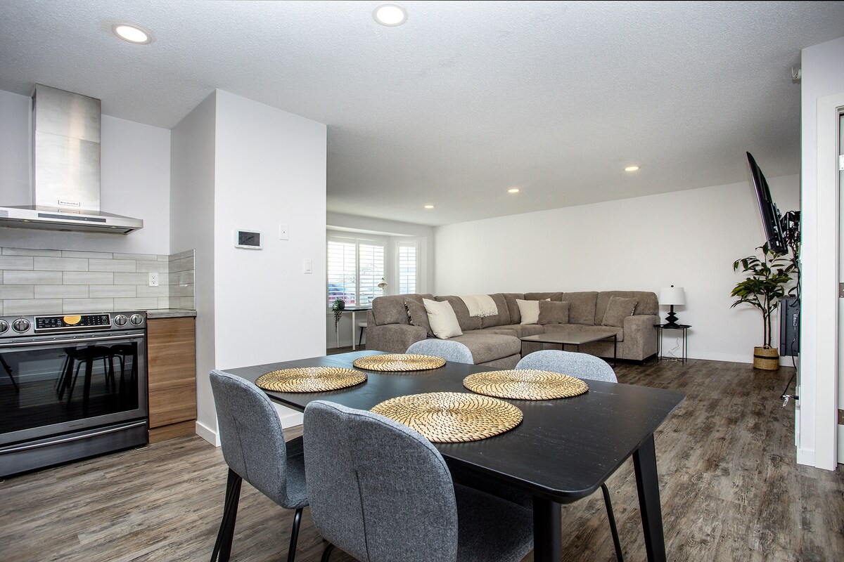 이 2베드룸 지하 스위트는 가족이나 출장자에게 이상적입니다. 최소 2일 숙박. 장기 숙박 할인. 어린이와 훈련된 반려동물을 동반할 수 있습니다 (울타리 마당이 있습니다). 일부 편의시설은 텔레비전 2개, 와이파이, 완비된 주방, 호텔 침구, 전용 세탁, 공용 파티오 및 바비큐, 놀이터, 레크리에이션 센터입니다. 레드 디어의 바람직한 SE 동네의 모든 편의시설에 가깝습니다. 웨스턴 파크/센트리움, 캐년 스키 힐까지 차로 가까운 거리에 있습니다. 매우 깨끗한 스위트.