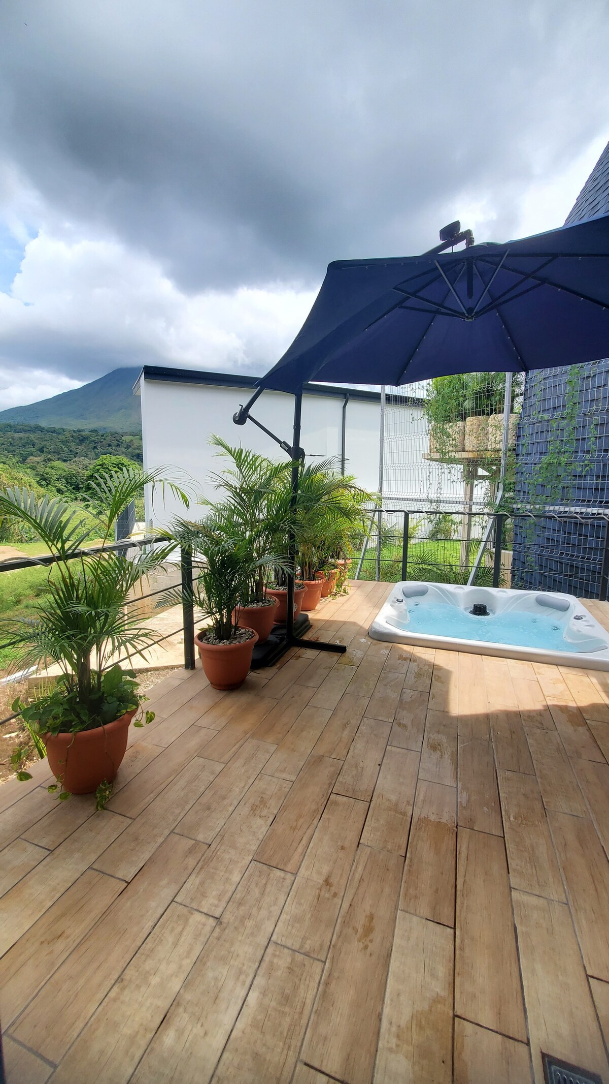 Un hospedaje para escapar de la rutina y conectar con la naturaleza, tiene un diseño moderno con una cálida decoración, rodeado de naturaleza donde podrás observar muchas aves, una linda vista al volcán, balcón, terraza, una refrescante piscina y jacuzzi privado. Un lugar ideal para parejas, amigos o para que puedas teletrabajar tranquilamente. Ubicados estratégicamente cerca de todas las actividades principales y a tan solo 2.5 km del centro de La Fortuna y a 1 km de La catarata La Fortuna.