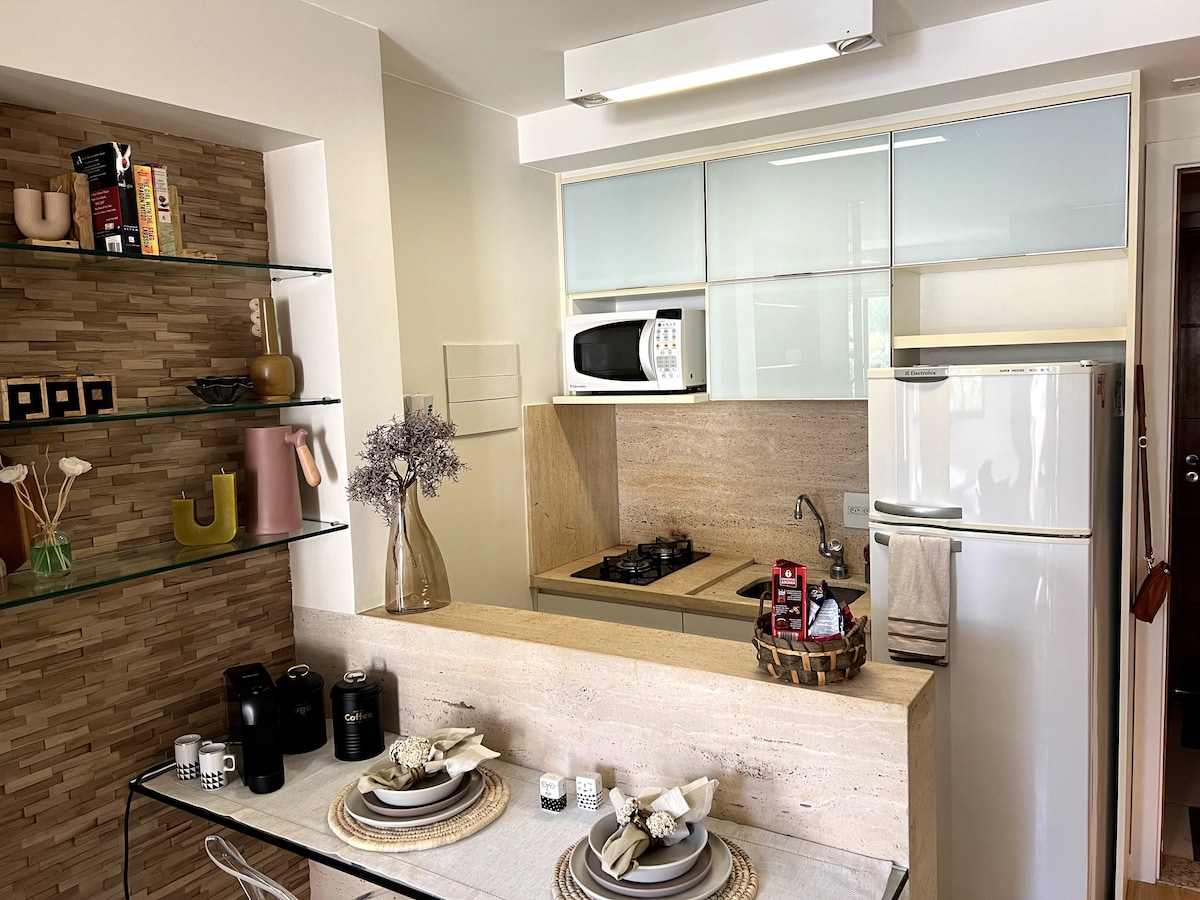 브라질리아 중심부의 편안한 숙소. 정원과 작은 개울이 보이는 라이프 리조트의 전략적인 블록 L에 머무세요. 미니 마켓, 카페, 펍, 피자 전문점, 미용실, 헬스장, 온수 수영장까지 몇 걸음 거리에 있습니다. 2인에게 이상적이지만 소파와 추가 매트리스가 있어 최대 4명까지 숙박할 수 있습니다. 가성비 좋은 단기 숙박에 적합합니다. 주방, 에어컨, 스마트 TV, 와이파이, 깨끗한 수건, 편의시설이 갖춰져 있습니다. 에스플러네이드에서 단 5분 거리입니다. 카약 및 기타 수상 스포츠를 즐길 수 있는 호수 지역.
