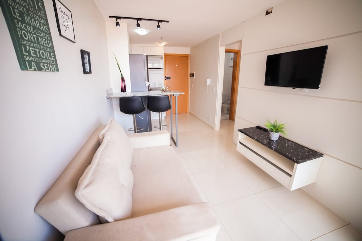 MAIS BEM AVALIADO FLAT BRASÍLIA 🗺️ Bairro Nobre ✈️ 15 min. do aeroporto 🛒 Ao lado do Supermercado 24h 🇺🇸 18 min. do consultado americano CASV 🛜 ⚡️Wi-Fi ❄️Ar cond. 🎥TV Smart 👨🏻🍳Fogao, Geladeira, Microondas e utensílios (Não temos filtro) 🅿️ Garagem privada a parte 🛁 Chuveiro, Toalha, sabonete, shampoo e condicionador. :. ÁREA COMUNS: 👙😎🩲 Piscinas, academia, Sauna, Jacuzzi (fechado às segundas) :. PROXIMIDADES A PÉ: Ⓜ️5 min Metrô 🛍️ 5 Principal shopping de Brasília