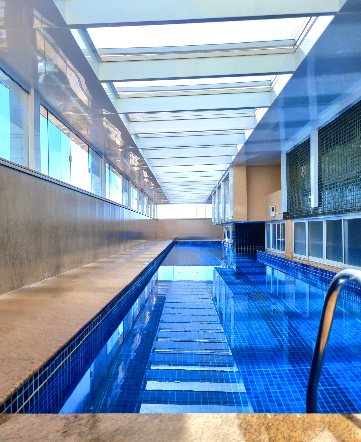 파노라마 전망을 자랑하는 고급 아파트로 DF 플라자 쇼핑몰을 독점적으로 이용할 수 있습니다. 세련된 환경, 알렉사를 통한 완전 자동화(조명, 에어컨, TV, 셔터). 퀸사이즈 침대와 인체공학적 베개가 있는 객실, 소파 베드와 65인치 스마트 TV가 있는 거실. 고급 어메니티가 갖춰진 고급 주방과 욕실. 인피니티 풀, 헬스장, 업무 공간이 있는 콘도. 초고속 와이파이, 전용 주차장, 연중무휴 보안 시설. 커플과 전문가에게 적합합니다. 탭 젠.