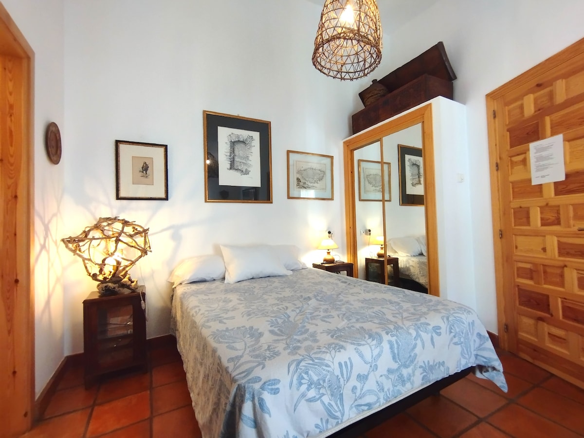 Acogedora habitación con baño y entrada autónoma. Es totalmente independiente y está situada en pleno corazón del casco histórico de Ronda. El espacio cuenta con una peculiar decoración, realizada a partir de materiales reciclados y reutilizados por mí, de forma personalizada y artesanal, dándole un aspecto único.