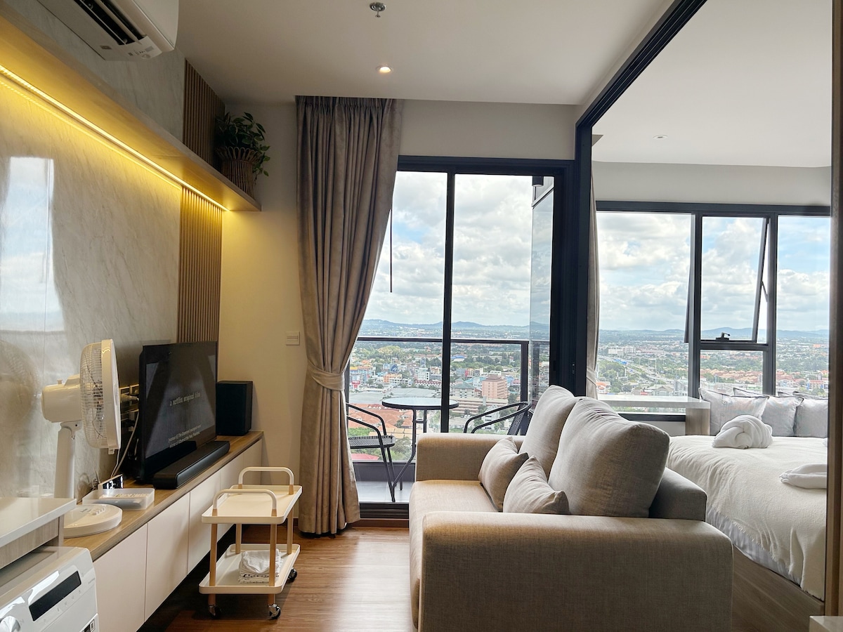 파타야 시티에서 꿈꾸던 장기 숙박 휴양지를 소개합니다! 23층에 위치해 있으며, 침실 1개, 발코니가 있는 넓은 거실, 전용 욕실이 있으며, 35평방미터의 공간에서 최고의 편안함을 선사합니다. 커다란 소파 베드에서 휴식을 취하고 시설이 잘 갖춰진 주방에서 좋아하는 식사를 준비하세요. 넷플릭스 프리미엄 구독, 전기, 수도 및 초고속 인터넷의 엔터테인먼트를 즐겨보세요. 추가 요금 없이 주간 청소 서비스와 침구 교체를 제공합니다.