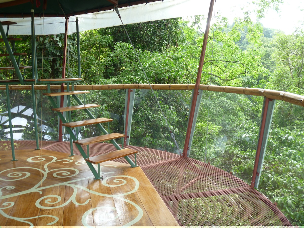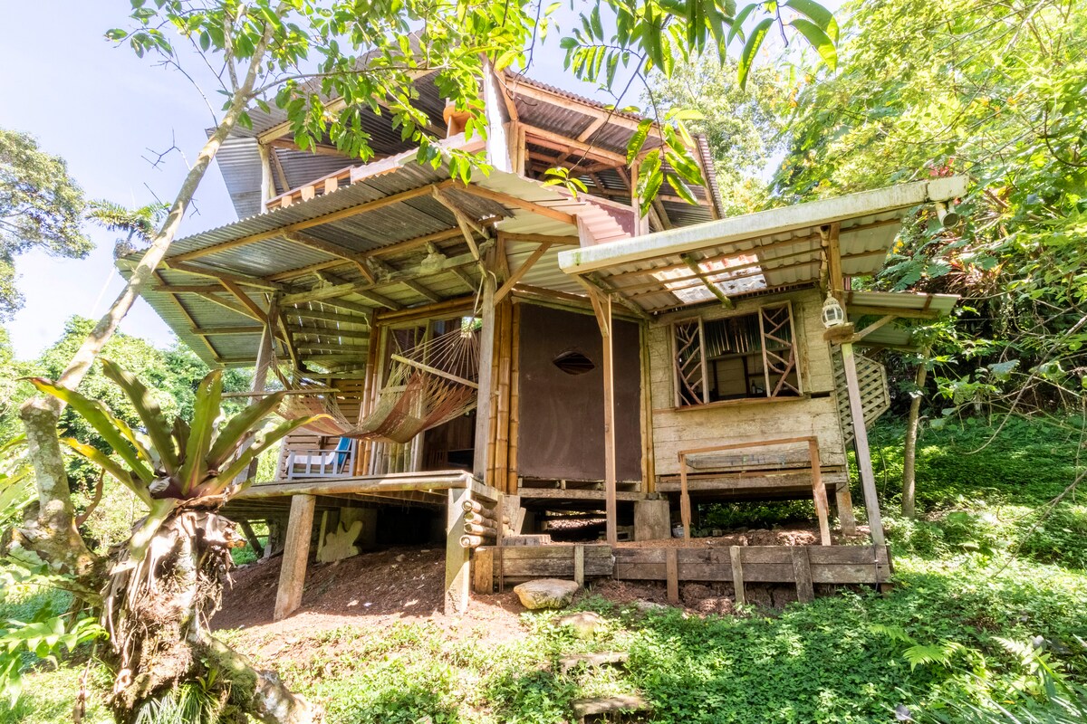 Casa nido Is situated in a lush tropical farm establish 20 years ago .This house is the perfect get away ,built completely with sustainable materials bambú and wood it offers the jungle experience with a small fully furnished kitchen wth windows overlooking the flight of toucans , a double bed,charming dinning area , shower and two terraces offer ample sights of tranquility. Note the house is up hill ,10min walk to the house from the entrance where there is secure parking area.