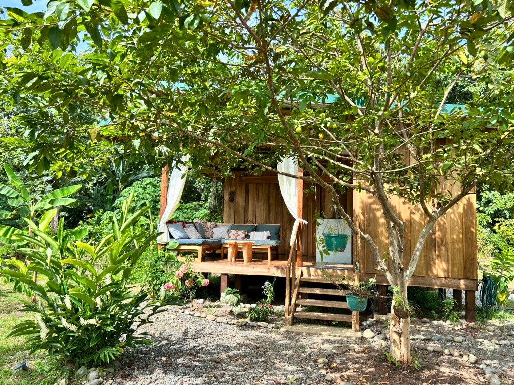La Casita Caribeña is the newest cabin in our guest house. Located between the jungle the Caribbean Sea, La Casita Caribeña is designed for travelers seeking an immersive experience under a beautiful orange tree in a boho tropical atmosphere. Designed and built by myself with an eco-conscious mindset, your stay will be a balance of comfort and environmental respect. Close enough to the beach to walk there, and far enough away from its noise to enjoy a peaceful environment, with a lot of birds