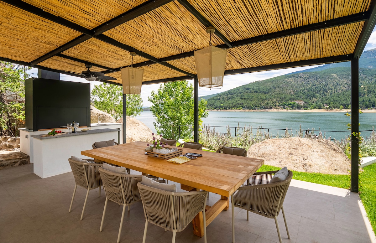 Charming rustic house on the banks of the Burguillo reservoir with direct access to the water. Ideal to disconnect and enjoy nature with family and friends all year round. Spectacular views, swimming pool, chimmey and garden with barbecue. The house has all the amenities to enjoy it both in winter and summer and only 1 hour from Madrid.
