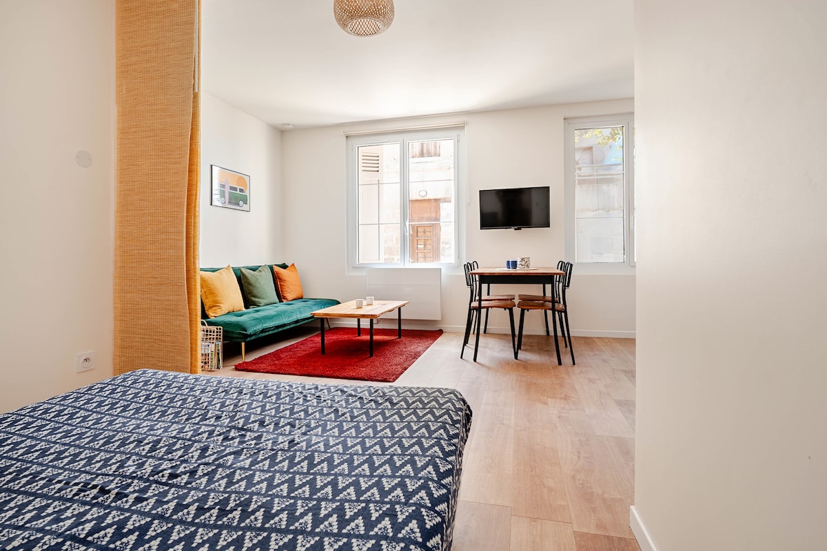 Notre maisonnette est une annexe de notre maison, à l’écart de l’habitation principale. Vous disposez d’un accès dédié et vous pouvez entrer/sortir librement. Notre rue est paisible et fleurie, tel un hameau en centre ville dans un style typiquement bordelais. Composé d’un petit salon, d'un coin nuit séparé par des rideaux japonais, d'un espace repas et d'une salle de bain/WC, il est très lumineux grace a ses grandes fenêtres et conserve sa fraicheur en été avec ses murs en pierre bordelaises.