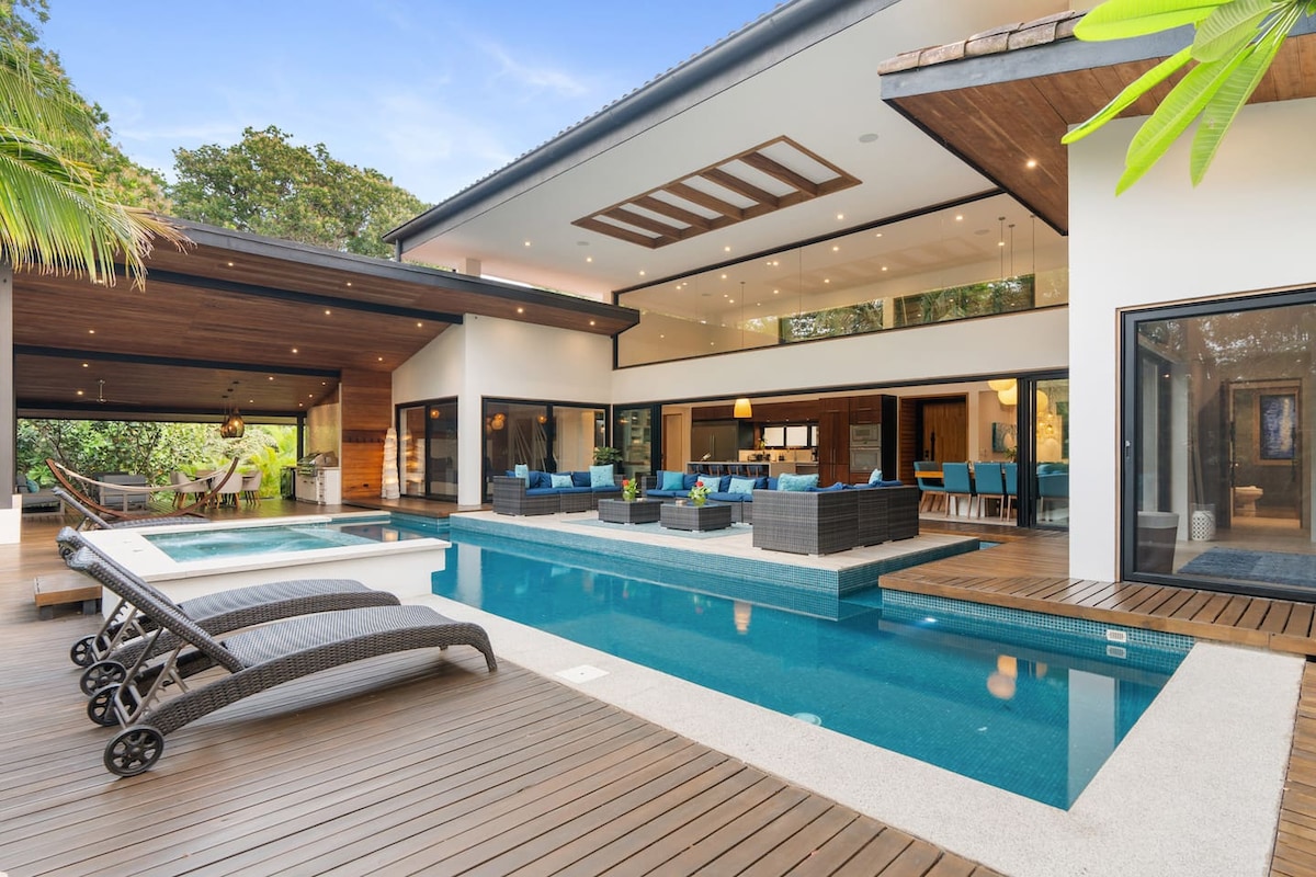 카사 프라나에 오신 것을 환영합니다. 고급스러운 해변 휴양지 럭셔리함과 편안함이 어드벤처와 만나는 카사 프라나에서 최고의 휴식을 경험하세요. 침실 5개, 욕실 5.5개를 갖춘 이 멋진 숙소는 절묘한 인테리어와 최고급 가구로 차별화되어 휴식과 즐거움을 선사하는 고요한 환경을 제공합니다. 아름다운 산책로를 따라 도보로 30초 거리에 플라야 그란데의 세계적인 수준의 서핑장이 있어 서핑 애호가와 가족 여행객 모두에게 완벽한 여행지입니다.