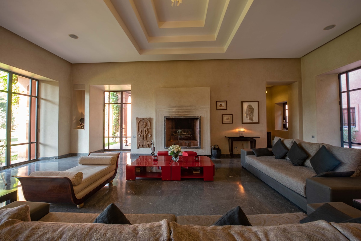 수영장과 전용 정원이 있는 웅장한 모로코 전통 주택에서 시대를 초월한 경험을 하세요. 가족이나 친구에게 이상적이며 우아하고 세련된 환경에서 휴식을 취할 수 있습니다. 마라케시의 유명한 건축가에 의해 2010년에 지어졌다. 650m2의 전용 정원과 3000m2의 아름다운 과수원 테라스 - 아틀라스가 내려다보이는 옥상 매우 큰 인피니티 풀 14 x 6m가 간과되지 않습니다. 인터넷 및 위성 TV, 넷플릭스를 이용하실 수 있습니다.