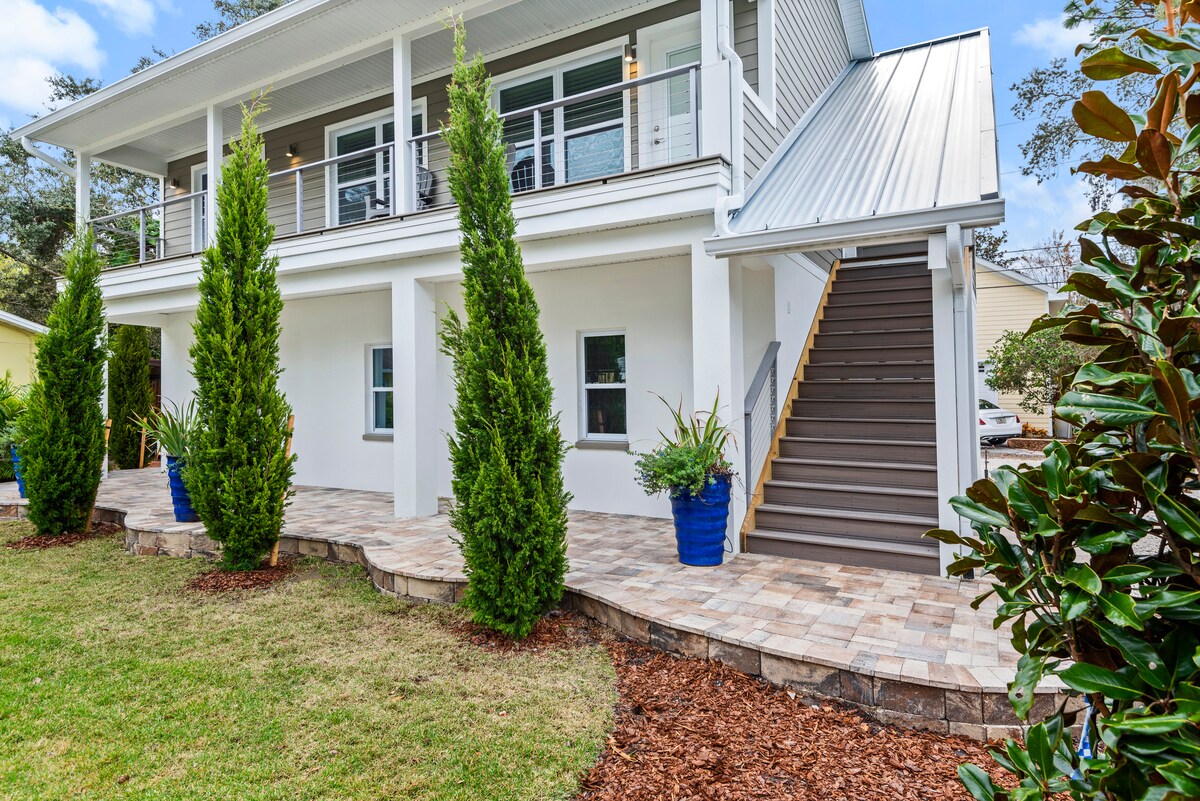 Welcome to our charming guesthouse in Riverside Heights, a safe and centrally-located neighborhood — 10 minutes from Downtown Tampa. This unique retreat for two has tropical vibes, a loft sleeping area, a well-stocked kitchen, and a private patio. Newly built from floor to ceiling, it is filled with stylish decor and luxurious furnishings. Your hosts include a Tampa native and food writer which means you’ll get the best recommendations on things to do and places to eat!