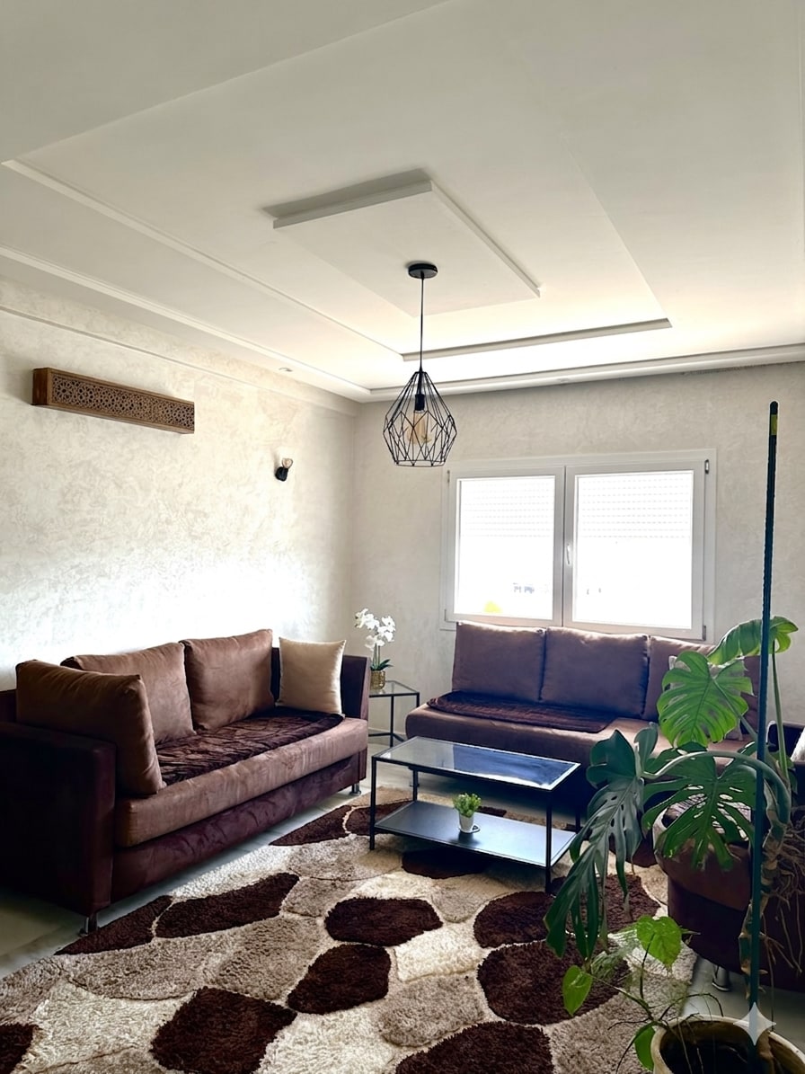 Located in the heart of Tangier, this apartment combines urban chic with coastal tranquility. Each carefully decorated room invites relaxation. The modern interior, featuring an American kitchen and an Italian shower, is designed for your comfort. Enjoy high-tech amenities such as centralized air conditioning, fiber optic Wi-Fi, Smart TV, and Netflix. Just steps away from the beach and the TGV station, City & Sea is a luxurious oasis.