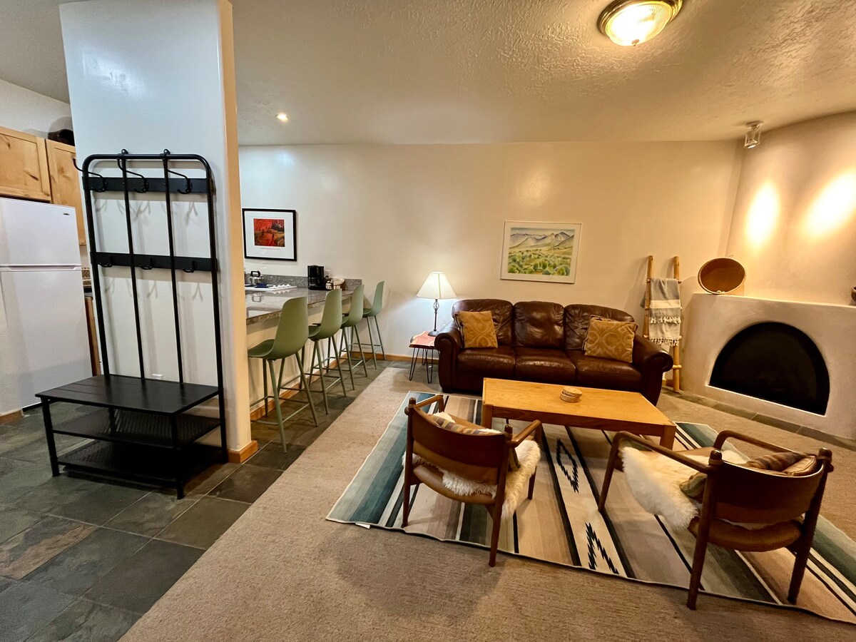 Come enjoy this one-bedroom, upstairs condo just a couple minutes from the base of the unrivaled Taos Ski Valley. Warm up with radiant in-floor heating and unwind by the gas fireplace after a day on the slopes, or enjoy the fresh mountain air and patio after hitting Taos’ many hiking trails. You'll appreciate the peace and quiet, mountain vistas, and proximity to trails and slopes. With both cable TV or streaming services and a well-stocked kitchen, even staying in is a vacation!
