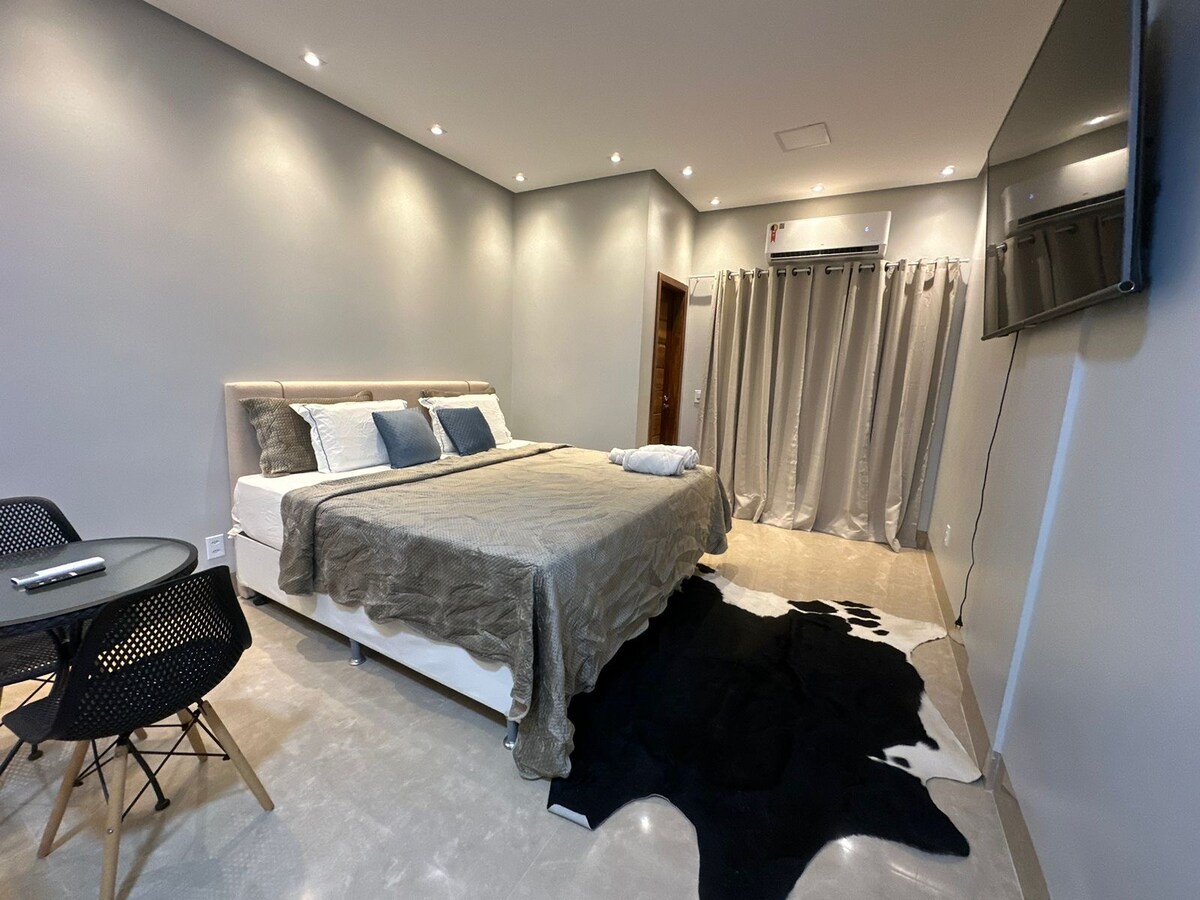 Bem vindo à VL 805 Desfrute de Studio moderno e aconchegante em Santarém-PA. Perfeito para casais, pessoas viajando sozinhas a lazer/trabalho ou família com um filho. Tudo foi pensado em cada detalhe para seu conforto, segurança e aconchego. O espaço irá preencher todas as suas necessidades de uma casa super equipada, com todos itens indispensáveis para seu dia, dia!!! Sinta-se em casa, viajando!!!