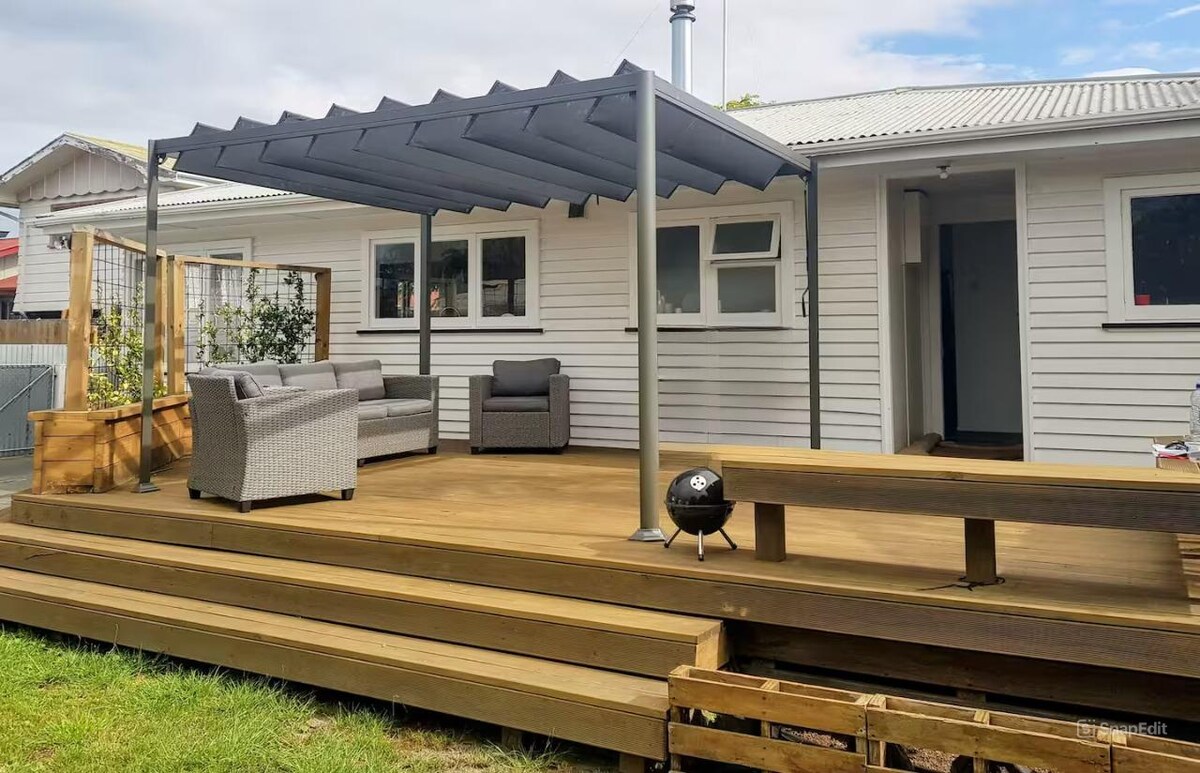 Keep it simple at this warm peaceful and centrally located place. Perfect for families or couples who are looking for a comfortable place to stay a short walk to the beach, hot pools, botanical gardens, cafes, restaurants & bars of Ahuriri. Cosy over the winter months with a gas fire heating the whole house requiring just the click of a button & panel heaters in the bedrooms. Fully insulated. All day sunshine and a lovely place to relax in the evening out back on the deck.