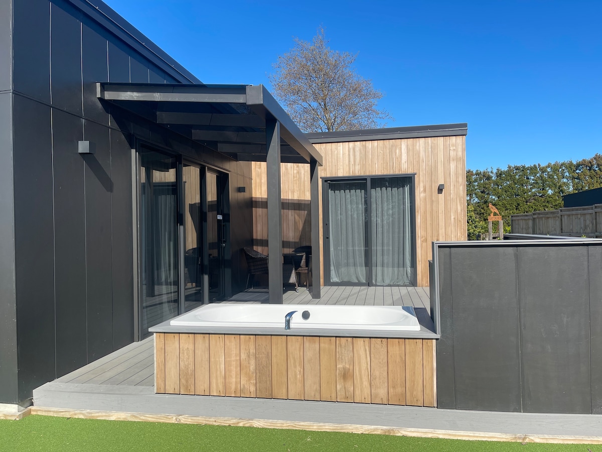 Add me to your watch list by clicking ❤️ on top of page. Walk in and instantly feel relaxed. ( you can thank me later ) Beautiful country views, just a short drive to beaches/cafes 2 bedrooms, large pull out couch in lounge , fully equipped kitchen, ample secure off street parking, even trailers and trucks Free wifi Smart TV Pet friendly Outdoor Bath (star gazing ) 5 hole putting green, putters and balls provided perfect for families, couple or business people