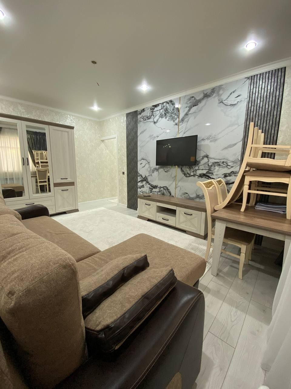 현대적인 디자이너 리노베이션을 거친 럭셔리 VIP 아파트. 완벽하게 깨끗하고 아늑하며, 톨레 바이 거리를 따라 도심에 있습니다. 도보 거리 내에 카페, 공원, 24시간 슈퍼마켓이 있습니다. 아파트에는 시설이 완비되어 있으며, 소음 차단이 있는 플라스틱 창문, 편안한 더블 침대, 세탁기, 플라즈마 TV, 에어컨, 아리스톤, 전자레인지, 와이파이, 스마트 TV, 디지털 품질의 200개 이상의 채널, 냉장고 등 편안한 숙박을 위한 모든 것이 마련되어 있습니다.