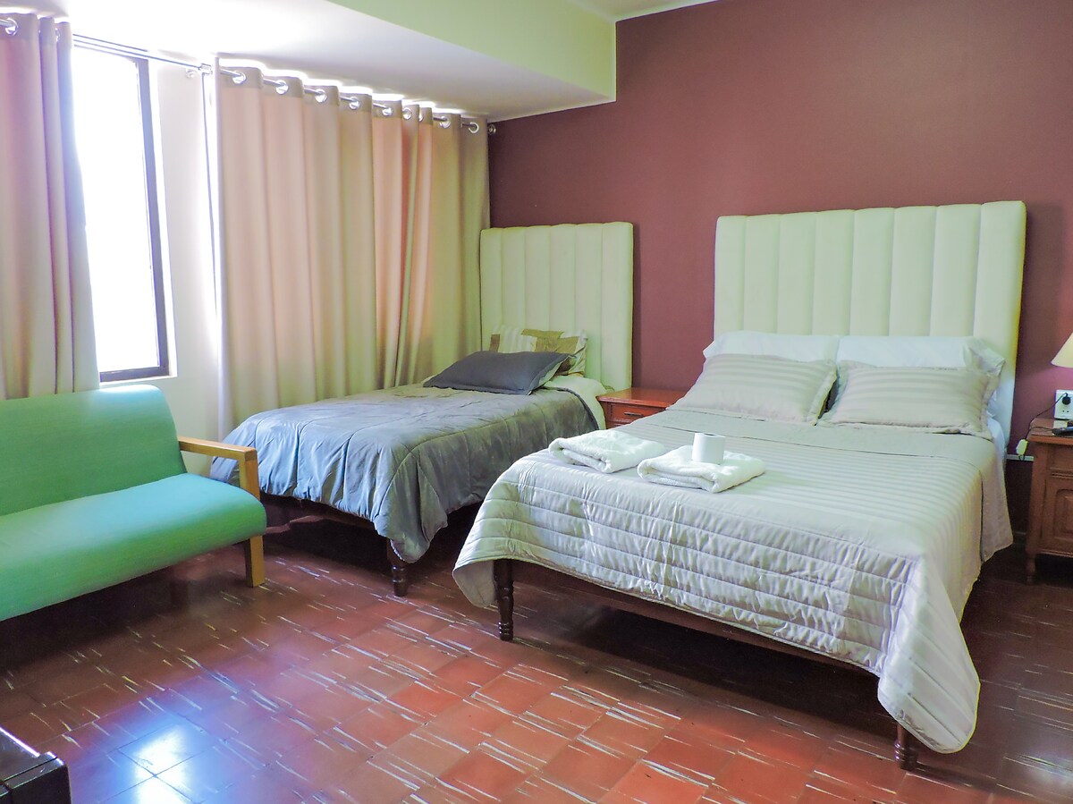 우리온도 광장에서 반 블록 떨어진 곳에 위치한 이 조용하고 우아한 공간에서 휴식을 취하세요. 최고의 레스토랑, 메가 센터, 상점 근처에 있습니다. 루이스 데 푸엔테스 메인 광장, 센트럴 마켓, 대성당, 상점, 부티크, 쇼핑몰, 다양한 관광 명소에서 5블록 거리에 있습니다. 녹지 근처의 조용하고 주택가에 위치하여 아름다운 산책을 즐길 수 있습니다.