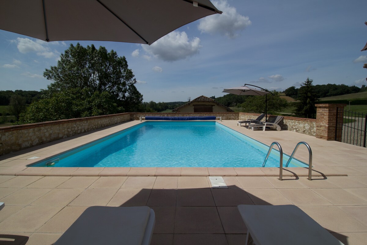 Beautiful tranquil setting, countryside France at its very best. Vast view of farmland and rolling hills, where the rotating crops also include sunflowers . Take a deep breath and decompress. Visit nearby bastide villages, farmers markets and vinyards, or travel a bit further to visit large cities