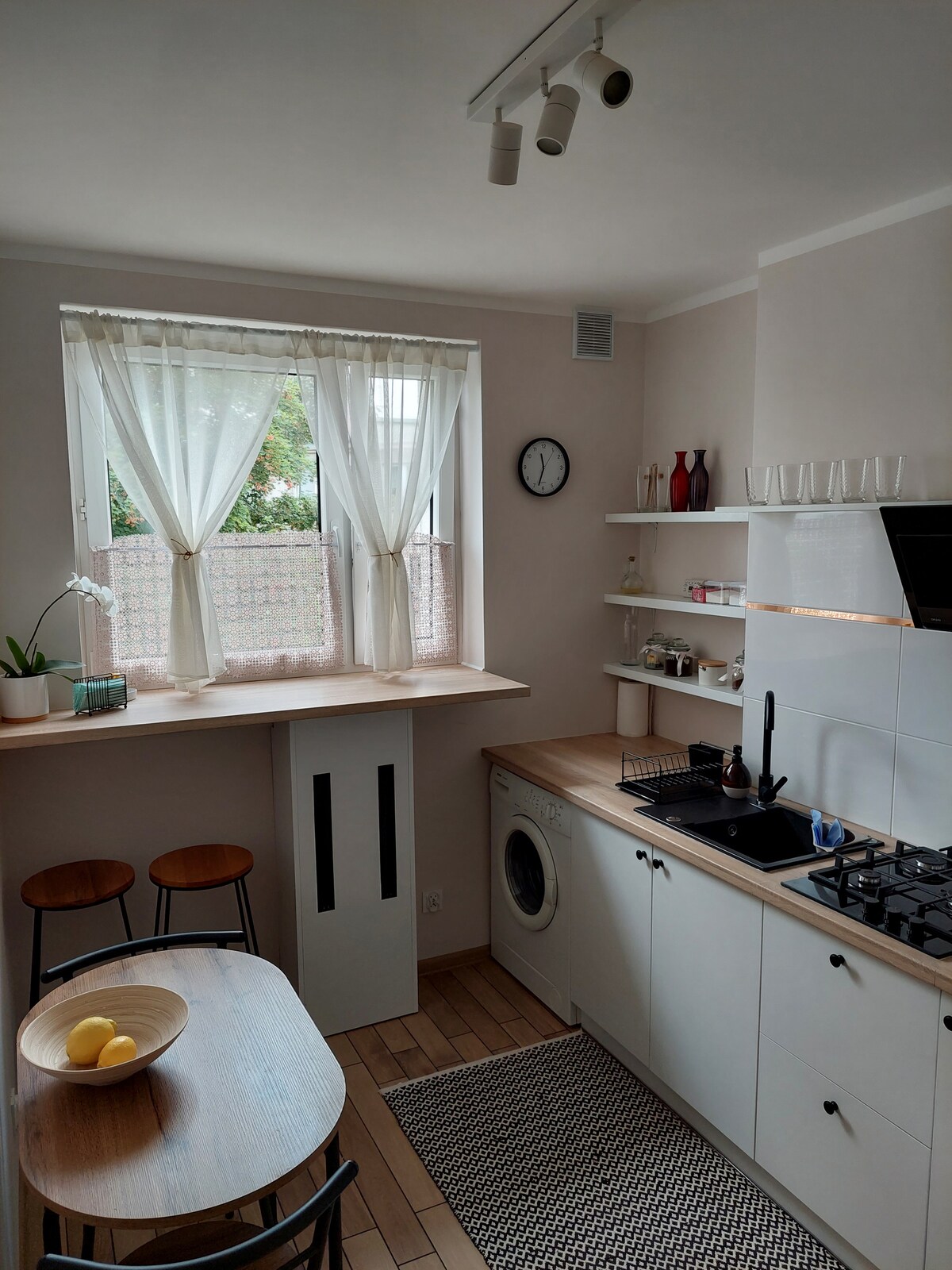 Nasze mieszkanie mieści 4 osoby, ma 2 pokoje kuchnie, łazienkę i dwa balkony. Zlokalizowane jest w centrum miasta, 5 min spacerem do starego miasta. W bezpośrednim sąsiedztwie mieszkania znajdują się dwa parki.