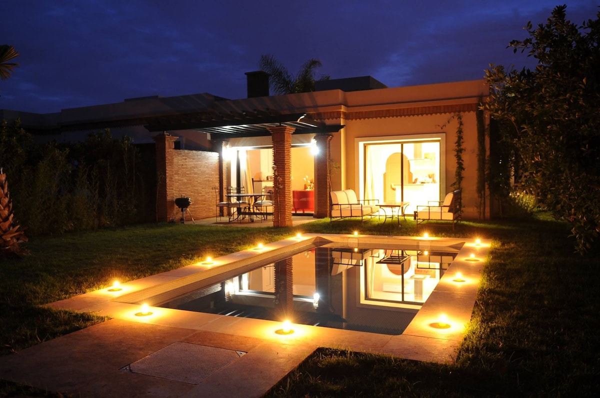 안전한 수영장이 있는 전형적인 모로코 스타일의 주택