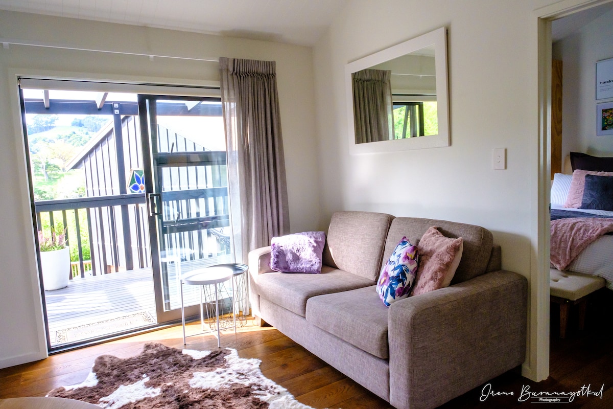 Enjoy a sunny and stylish experience at this centrally located townhouse in Matakana Village. Bright and sunsplashed with a spacious kitchen, indoor and outdoor living room, and a gorgeous bedroom upstairs with an AC / heat pump, the villa is across from 8 Wired Brewery and steps from the Farmer's Market, cinemas, and other Matakana shops and eateries.