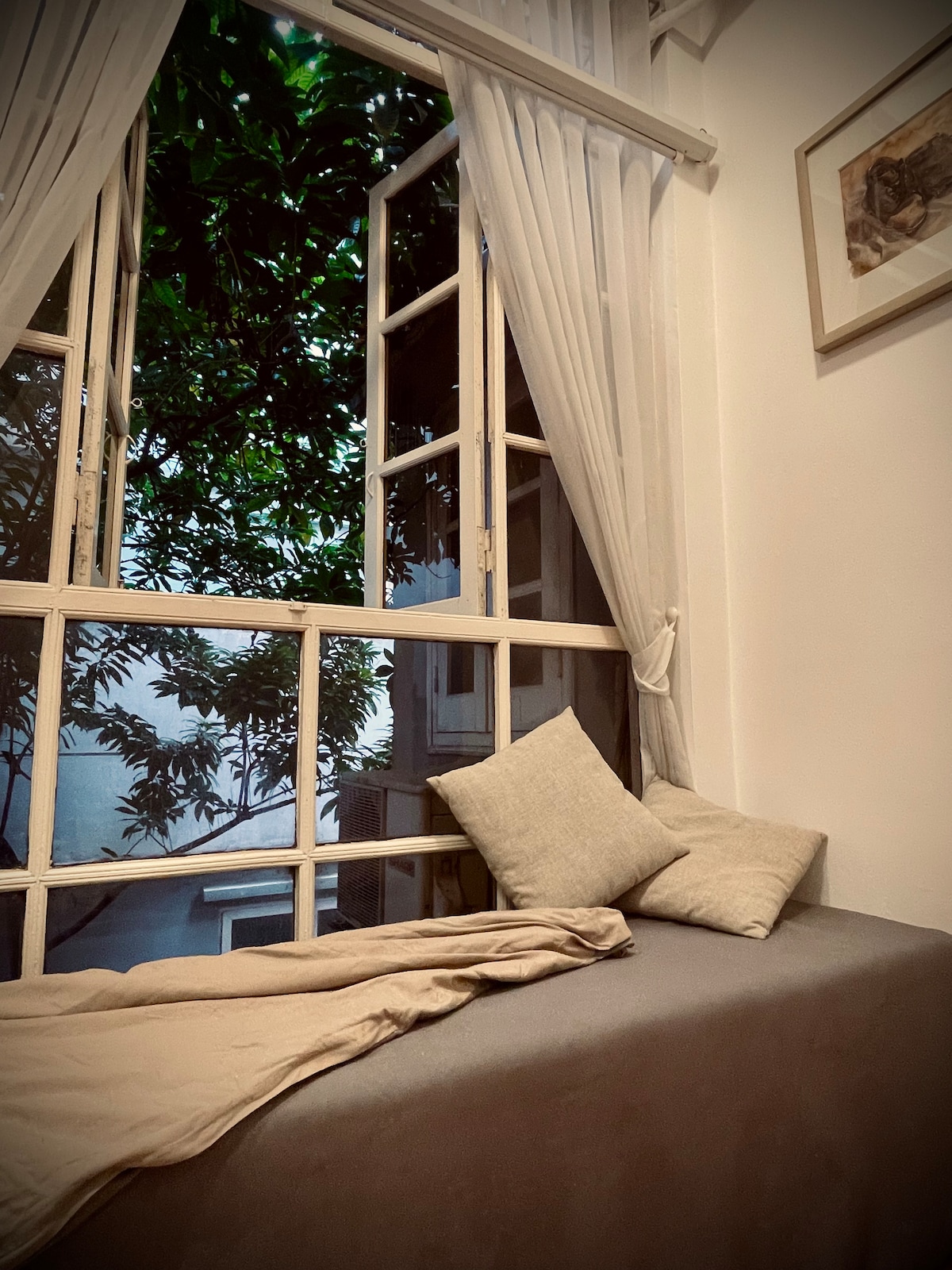 천연 목재 디자인과 녹음이 가득한 전용 야외 발코니가 있는 아늑한 스튜디오. 트루크박 호수 근처의 안전하고 조용한 동네에 위치한 건물 4층에 있습니다. 1인 여행자 또는 평화로운 휴양지를 원하는 커플에게 적합합니다. 응이어 부인과 매일 오전 9시부터 오후 4시 30분까지 건물에서 직접 만나 따뜻한 도움을 드립니다.