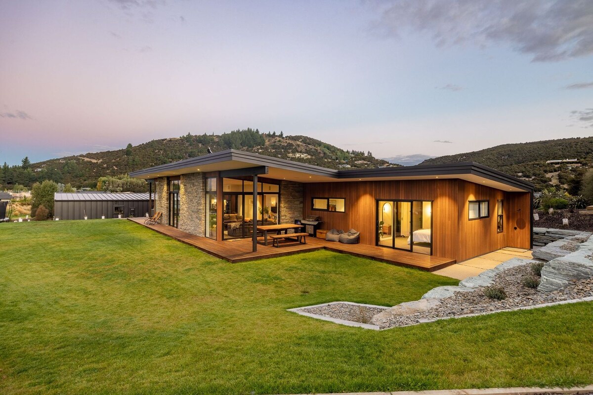 이 건축적으로 고급스럽고 따뜻하며 현대적인 3/4 베드 숙소 플러스 스튜디오는 와나카, 현지 산책로, 호수, 강에서 가깝습니다. 넓은 산 전망, 커다란 잔디밭, 프라이버시를 갖추고 있습니다. 바닥 난방 및 냉방 시설이 있어 겨울과 여름에 완벽한 숙소입니다. 산이나 호수에서 하루를 보낸 후 가스 난방 욕조, 사우나, 얼음 목욕, 샤워를 즐겨보세요. 트램펄린, 야외 게임, 러닝머신, 요가/헬스 장비 등 재미있고 건강한 옵션도 많습니다.
