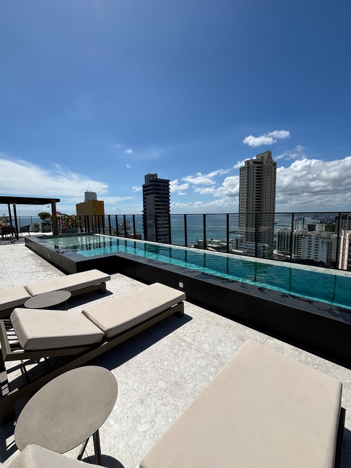 Experience the best of Salvador in the exclusive Corredor da Vitória! Just steps away from the city's finest restaurants, cafés, and shops. This brand-new, modern, and fully equipped studio features a stunning rooftop, infinity pool, gym, and breathtaking ocean views. With sophisticated design, a premium bed, air conditioning, a full kitchen, and all the comfort you need. Located in the city's most prestigious neighborhood. Stay with a Superhost and enjoy an unforgettable experience!