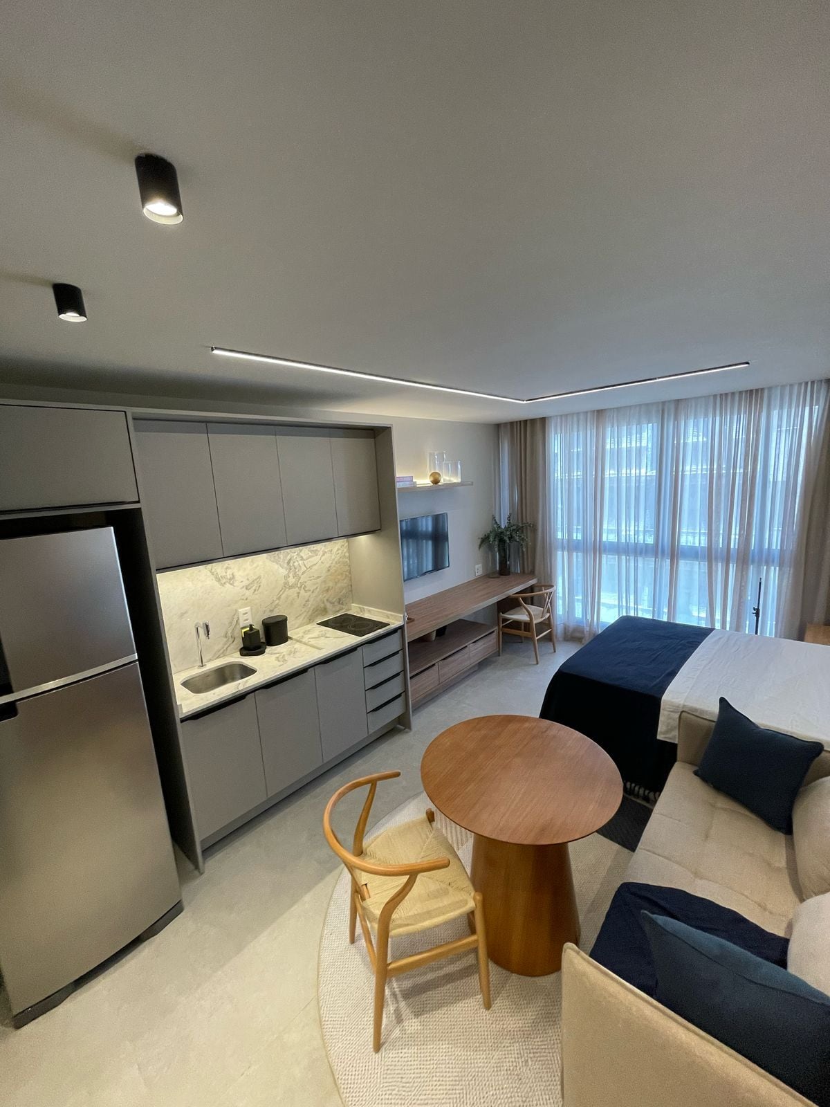 Prédio com vista para a Baía de todos os Santos, em frente prédio aonde mora Ivete Sangalo Studio de alto padrão com: cama queen com smart tv ambientes climatizados mesa para home office cozinha equipada Ideal para até 4 pessoas, roupas de cama e toalhas de banho são fornecidas A cobertura com vista para o mar possui:: piscina, academia e um espaço gourmet O prédio ainda conta com: lavanderia self service espaço de co-working mini mercado 24 horas Estacionamento: 1 vaga